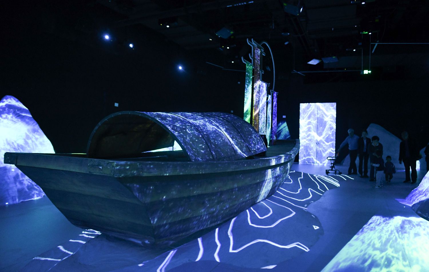 4月3日,杭州亚运会开幕式的道具船吸引参观者。(图片来源:中新社)