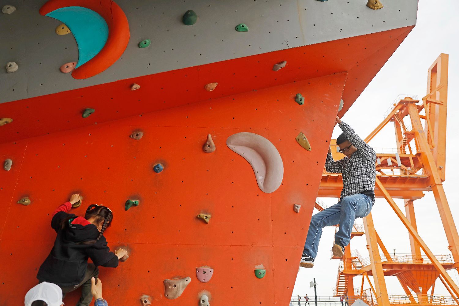 4月4日,市民带着孩子在上海徐汇滨江绿地体验攀岩运动。据悉,巴黎奥运会资格系列赛·上海将于5月16日至19日在黄浦滨江举行,作为国际奥委会新创办的集体育、文化、艺术于一体的节日型赛事,奥运会资格系列赛是《奥林匹克2020+5议程》的重要内容,包括自由式小轮车、滑板、霹雳舞和攀岩4个大项6个分项的比赛,奥运会资格系列赛将是这四个项目的终极资格赛。(图片来源:中新社)