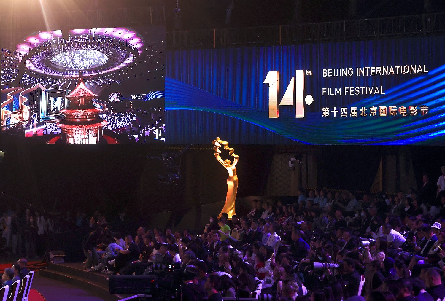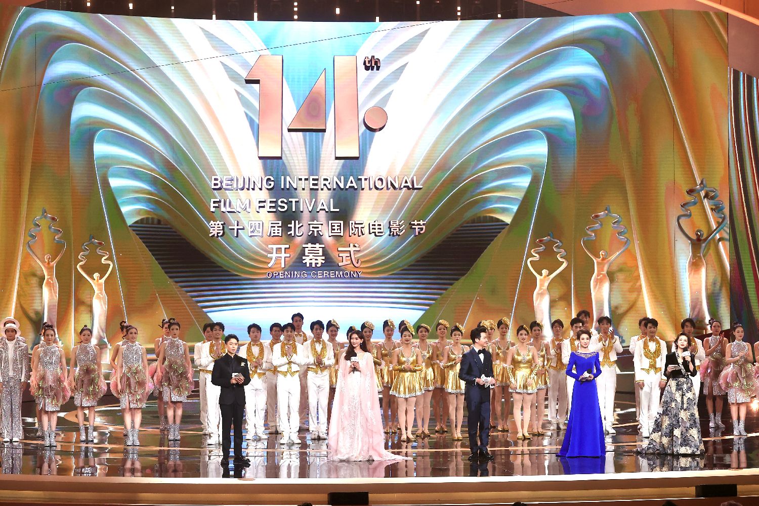 4月18日晚,第十四届北京国际电影节开幕,本届北影节以“光影互鉴·同道相益”为主题,4月18日至26日在北京举办。图为开幕盛典。(图片来源:中新社)