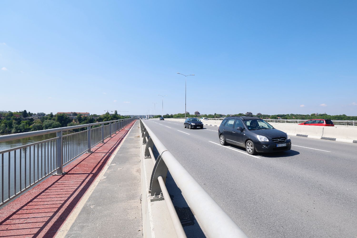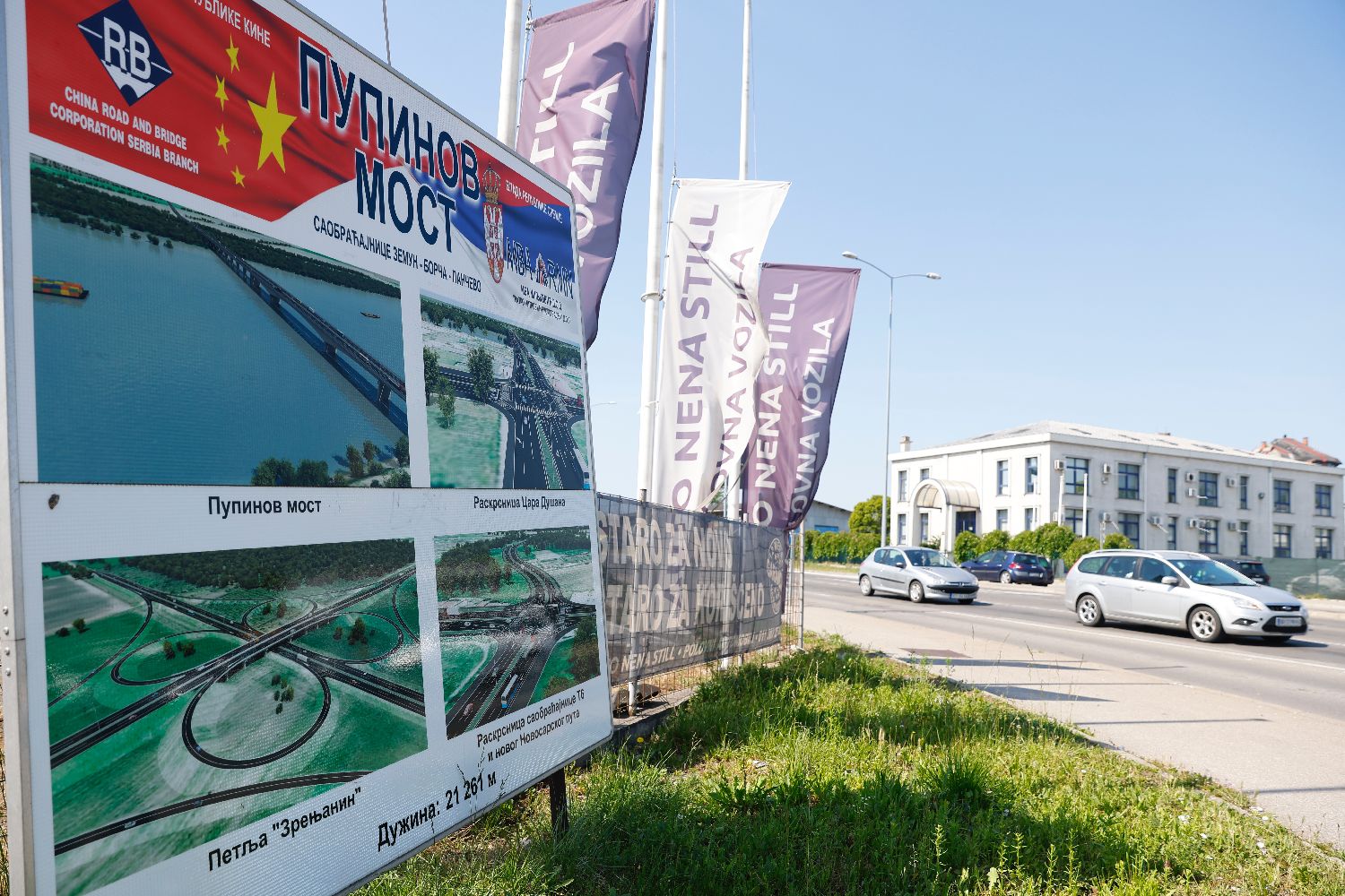当地时间5月5日拍摄的位于塞尔维亚首都贝尔格莱德的泽蒙-博尔察大桥。(图片来源:中新社)