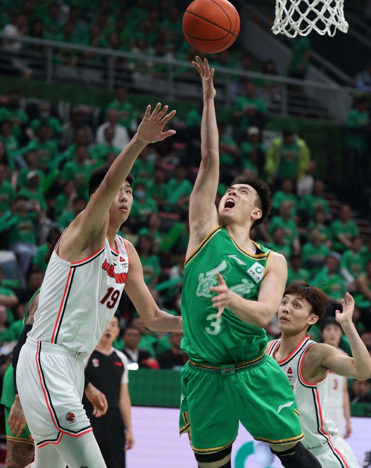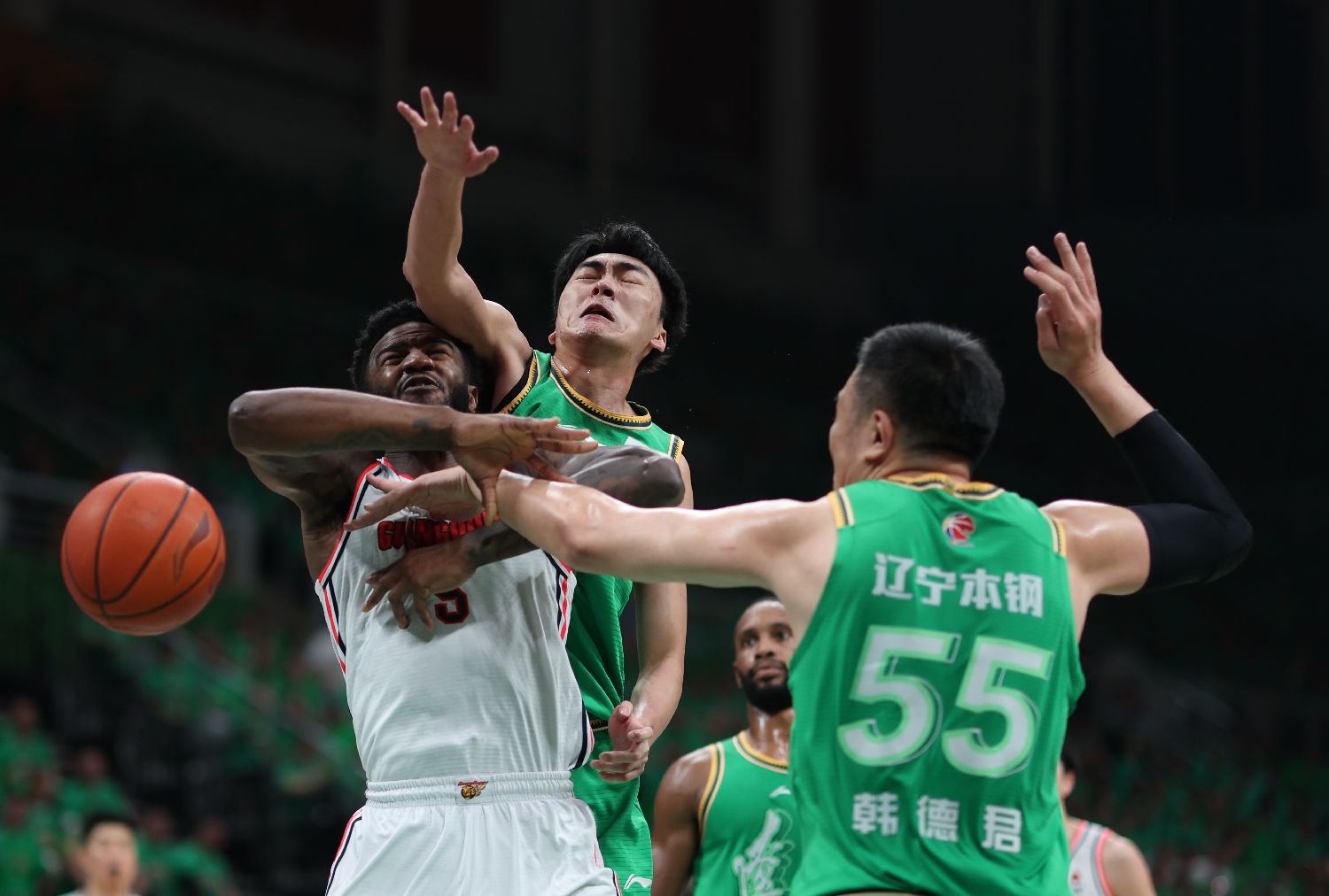 5月11日,在辽宁沈阳举行的2023-2024赛季中国男子篮球职业联赛(CBA)季后赛半决赛第五回合比赛中,辽宁本钢队主场116比95胜广东华南虎队,以总比分3比2晋级总决赛。(图片来源:中新社)