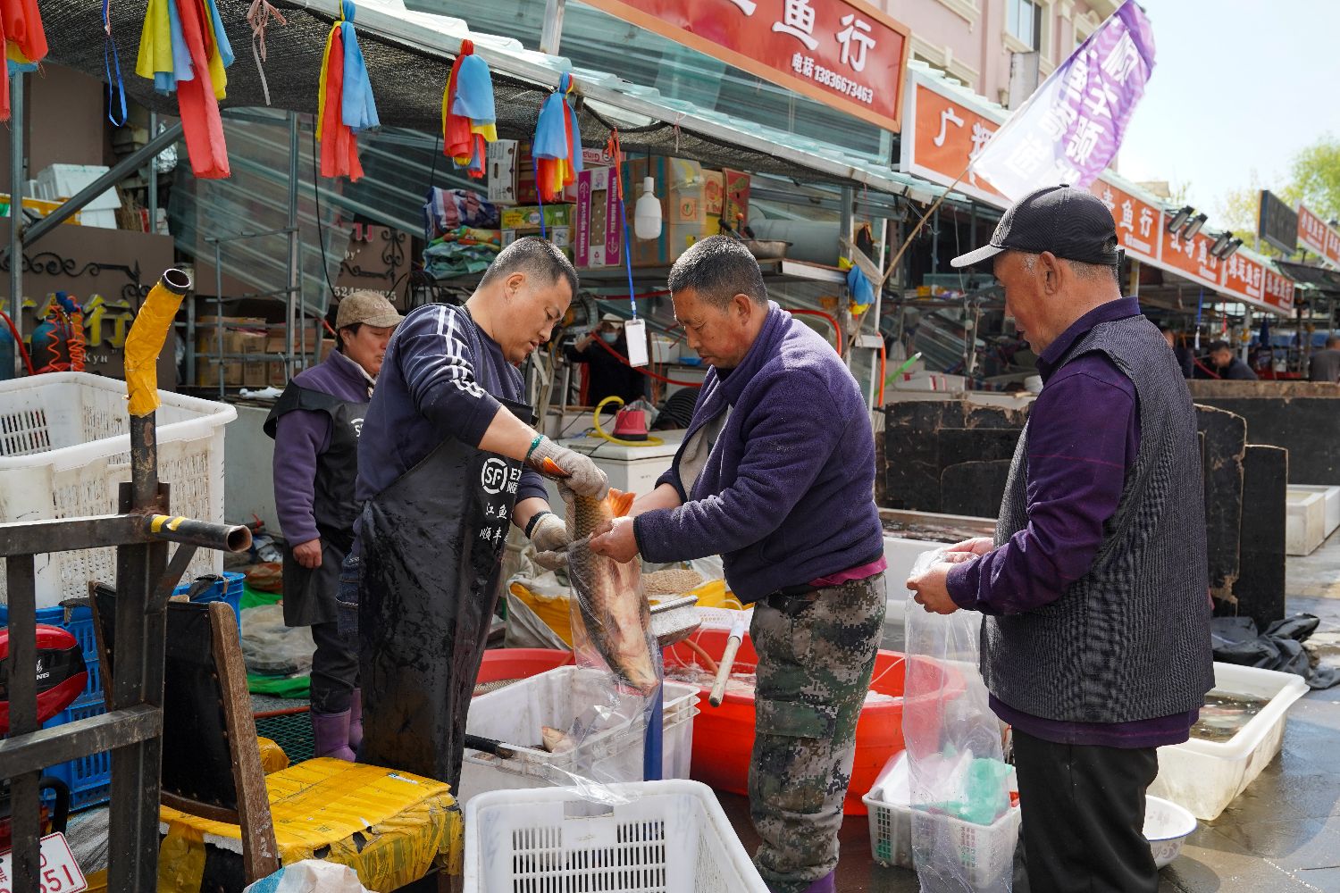 6月3日,黑龙江抚远,消费者在“东极鱼市”上买鱼。(图片来源:中新社)