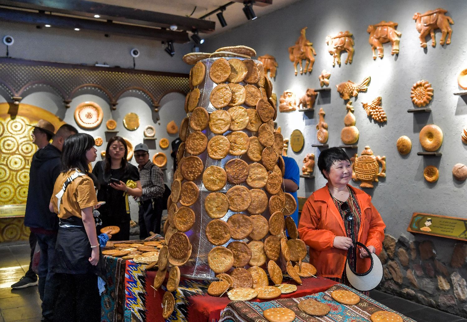 7月8日,新疆乌鲁木齐市大巴扎步行街,游客参观新疆馕主题馆。(图片来源:中新社)