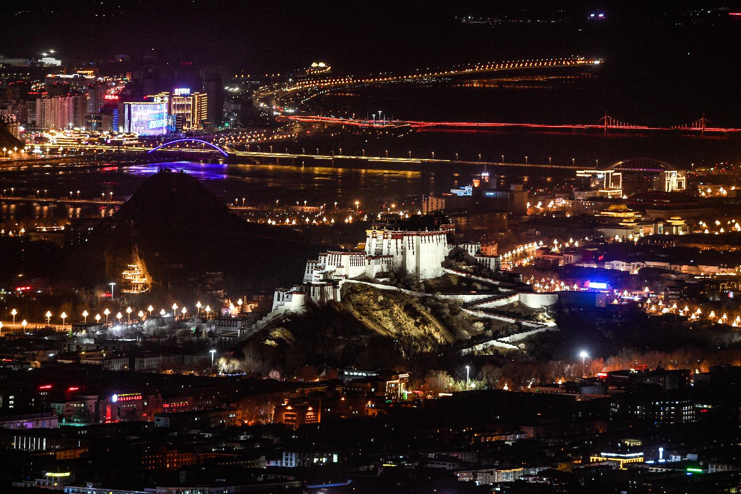 12月24日晚,西藏自治区拉萨市灯光璀璨,布达拉宫夜景迷人。(图片来源:中新社)