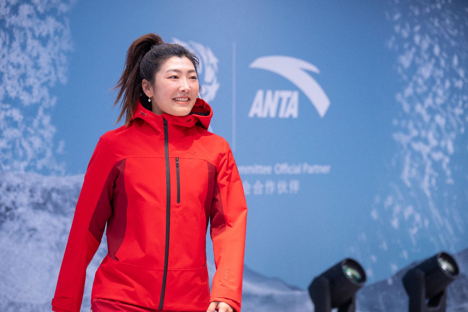 1月9日,2025年第九届亚洲冬季运动会中国体育代表团领奖装备在哈尔滨发布。图为北京冬奥会冠军徐梦桃现场展示领奖装备。(图片来源:中新社)