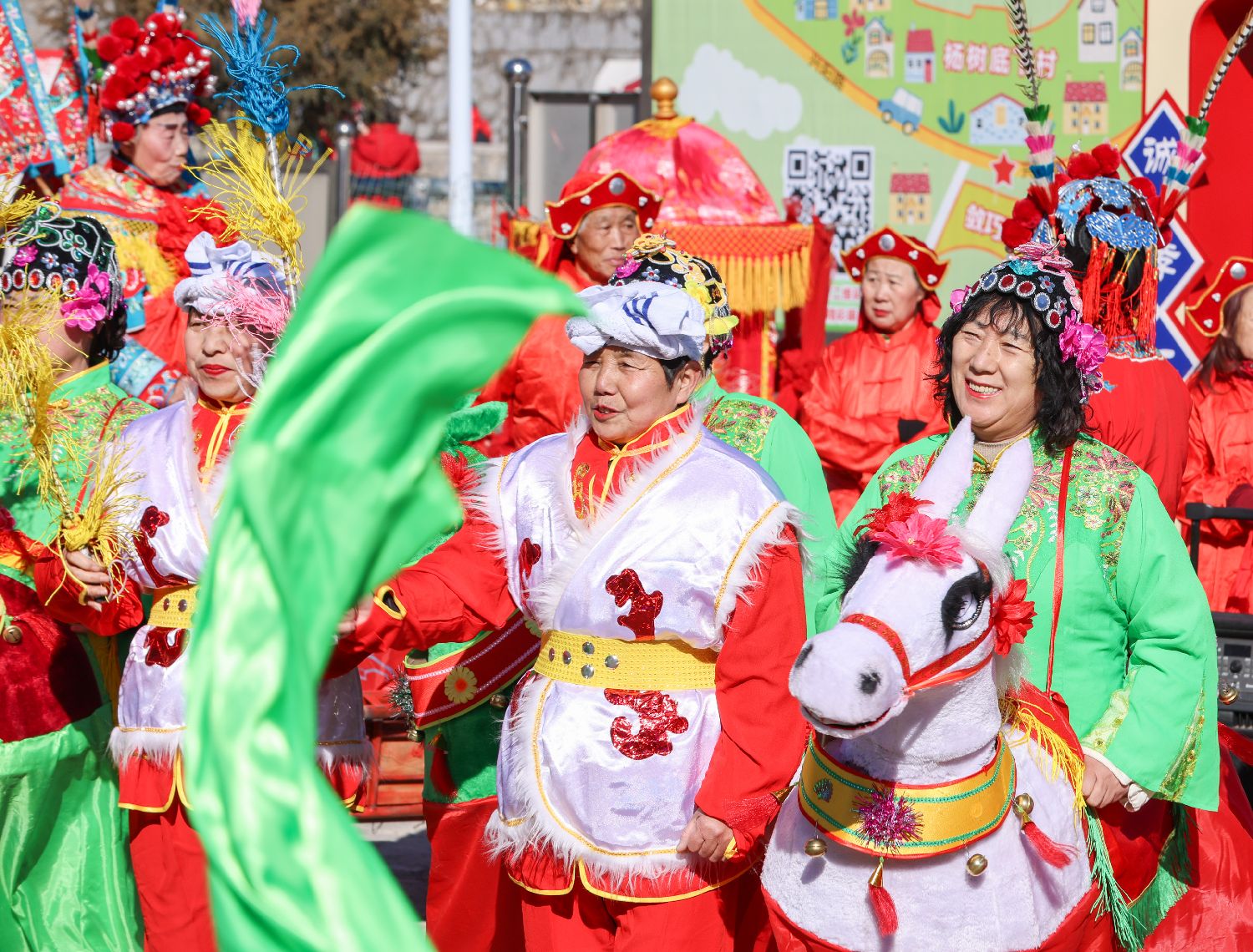 2月13日,农历正月十六,北京市怀柔区琉璃庙镇第十六届“敛巧饭”民俗文化活动在杨树底下村开幕。图为民俗表演。(图片来源:中新社)