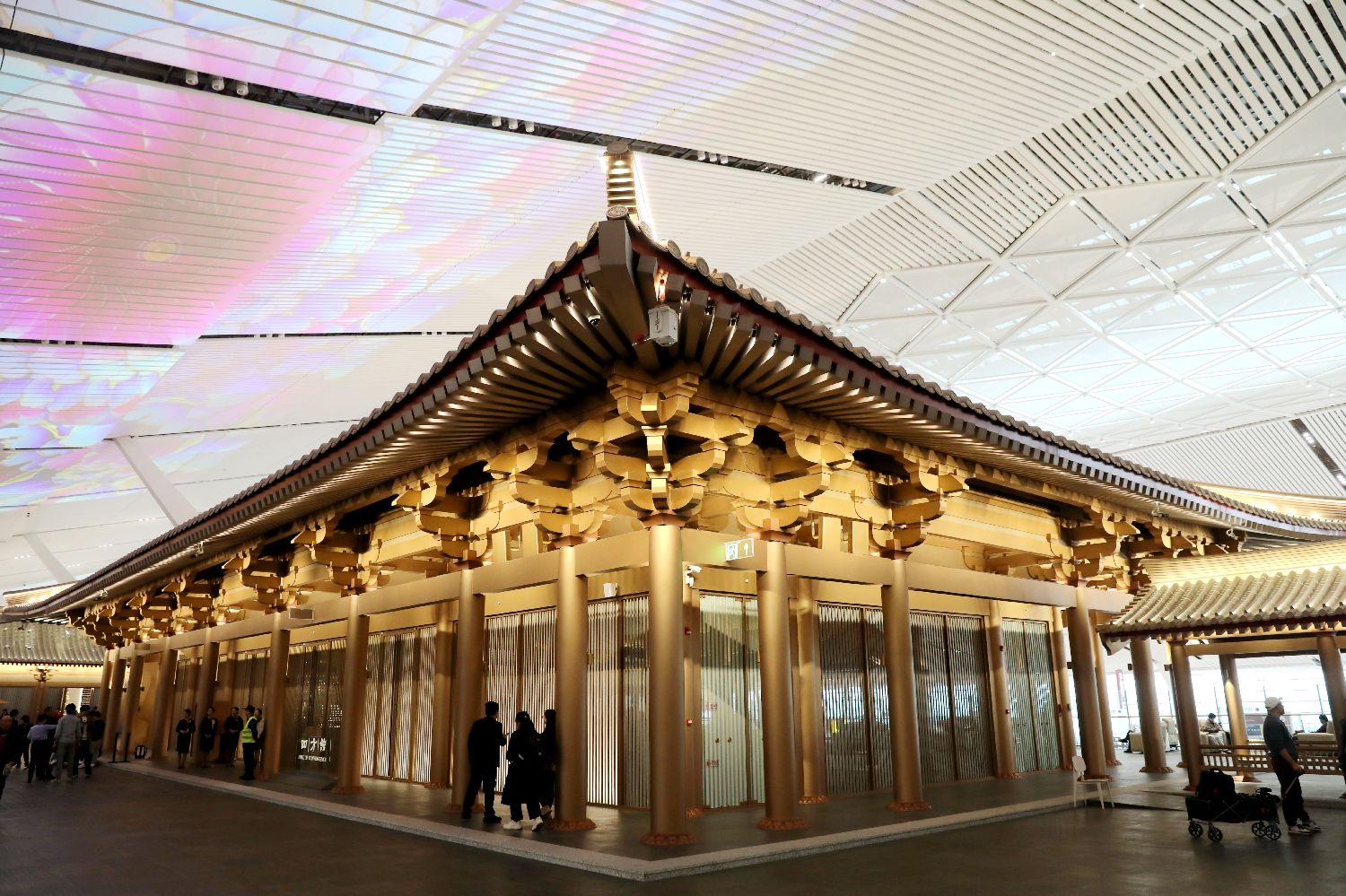 2月20日,陕西西安,西安咸阳国际机场T5航站楼正式投入运营,全球首个设置在机场内的在地文物展示博物馆正式揭牌。其中珍宝馆展出了国家一级文物“秦公镈”,四方馆为基本陈列展览,展品以机场历次建设过程中考古发掘的相关文物为主。图为四方馆。(图片来源:中新社)