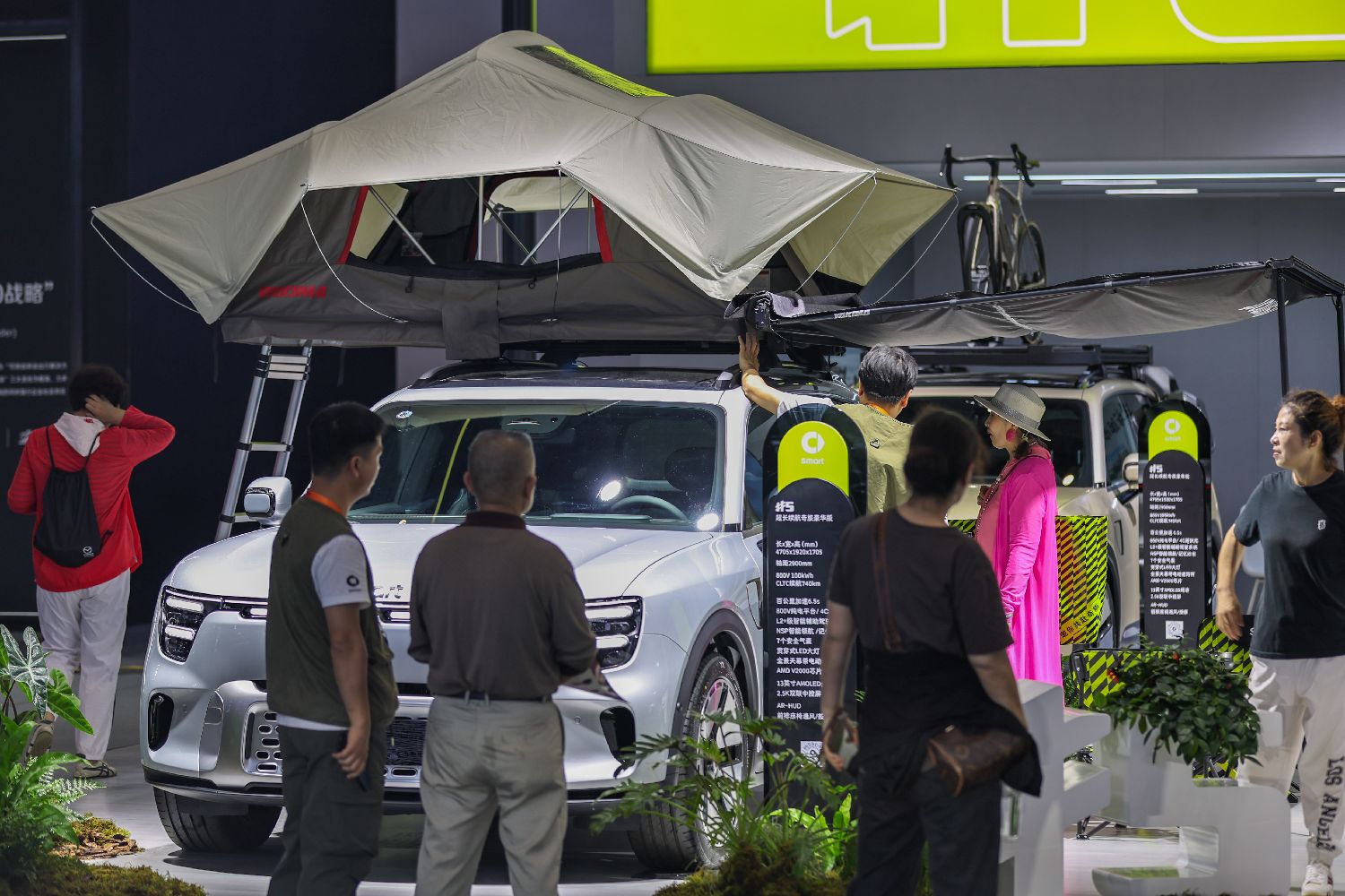 3月14日,一款新能源越野车吸引民众参观。当日,2025海南国际车展暨海口国际智能新能源汽车展览会正在海南海口举办。本届车展展出面积达6万平方米,吸引上百家车企携千余款车型亮相。中新社记者骆云飞摄