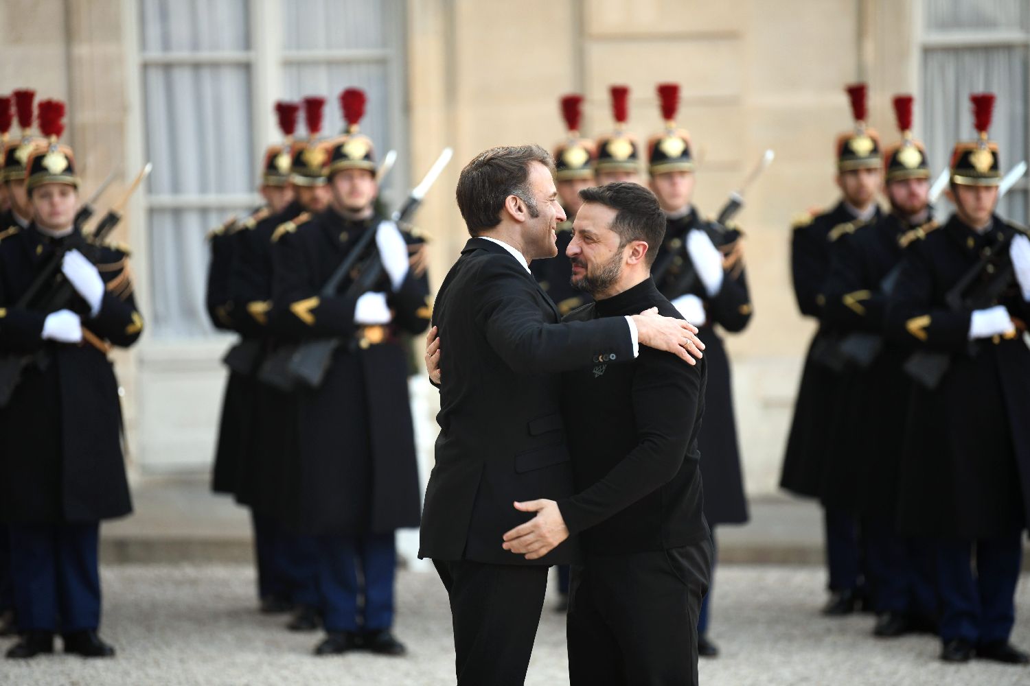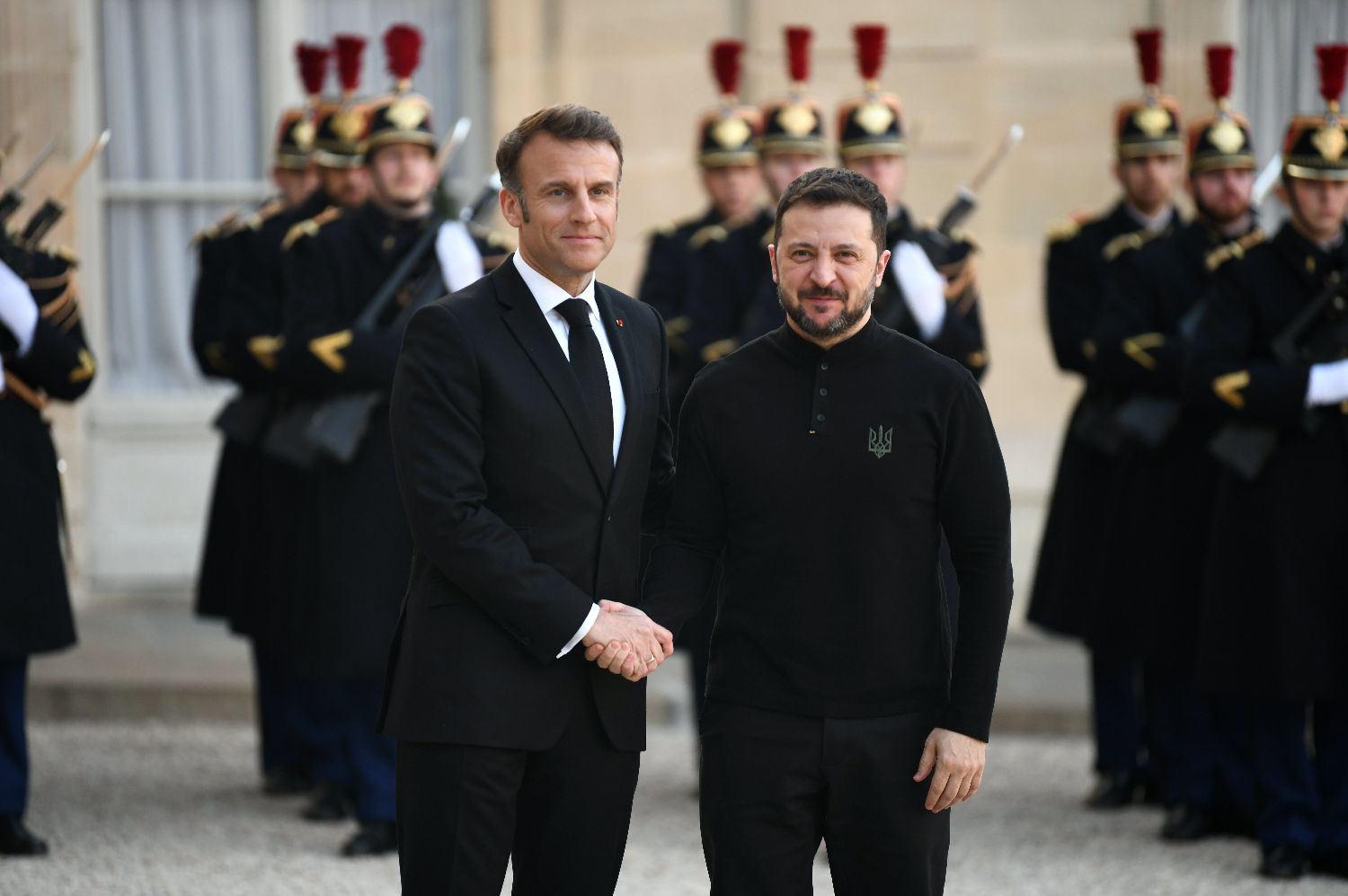 当地时间3月26日,法国总统马克龙与乌克兰总统泽连斯基在巴黎爱丽舍宫举行会谈。(图片均据中新社)