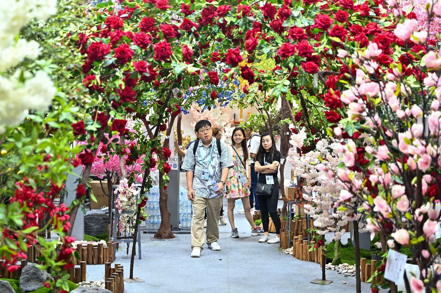 4月23日,第137届中国进出口商品交易会(广交会)第二期在广州开幕。本期展会以“品质家居”为主题,包括家庭用品、礼品及装饰品、建材及家具3个板块15个展区,线下展展览总面积51.5万平方米,展位数量24735个,参展企业10313家。图为采购商在园林用品展区挑选产品。中新社记者陈骥旻摄