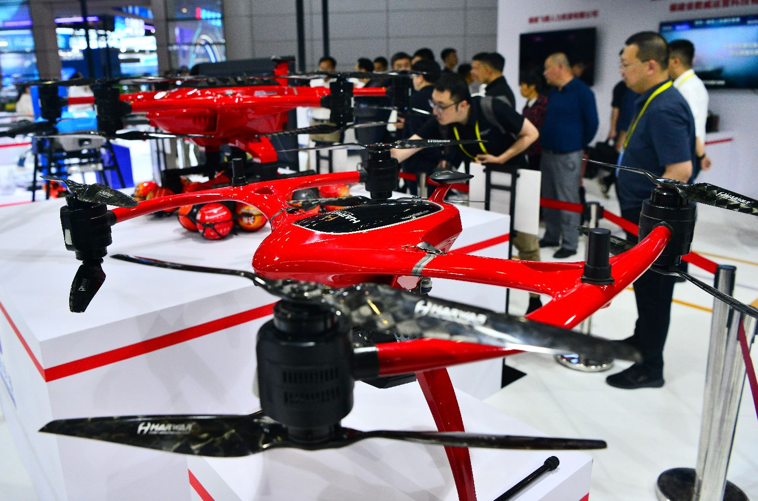 4月29日,各种类型的灭火救援无人机吸引参观者。第八届数字中国建设峰会正在福建福州举行,本届峰会现场体验区首次设立低空经济专区,集中展示“数据要素+低空经济”的创新技术和应用。当前,低空经济正在逐渐融入民众的日常生活。中新社记者张斌摄