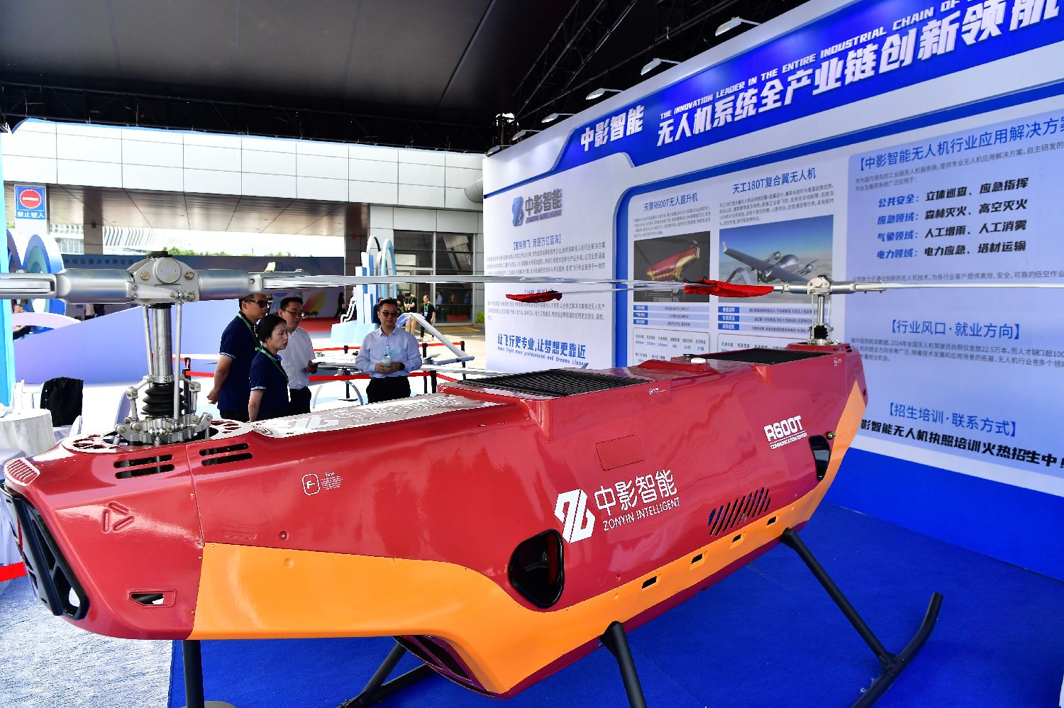 4月30日,体验区展示的天擎R600T无人直升机。第八届数字中国建设峰会正在福建福州举行,本届峰会现场体验区首次设立低空经济专区,集中展示“数据要素+低空经济”的创新技术和应用。当前,低空经济正在逐渐融入民众的日常生活。中新社记者张斌摄
