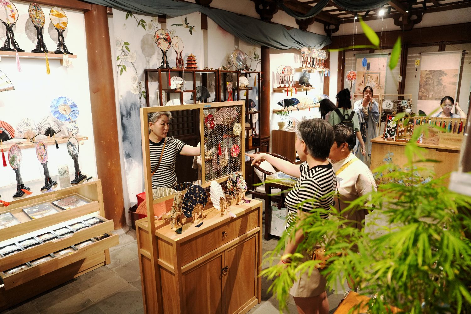 5月20日,游客在江苏扬州中国大运河博物馆选购文创产品。据了解,中国大运河博物馆是集运河文物收藏、展示、研究、教育于一体,兼顾旅游休闲与对外交流的专题性博物馆,是大运河国家文化公园建设的标志性博物馆。(无人机照片)中新社记者张祥毅摄