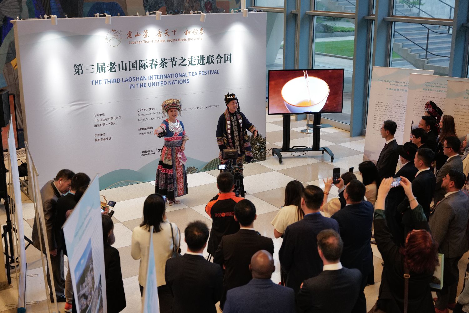 当地时间5月21日,中国常驻联合国代表团在纽约联合国总部举行主题活动庆祝第六个“国际茶日”。图为来宾欣赏云南省文山州麻栗坡县少数民族歌舞表演。中新社记者王帆摄