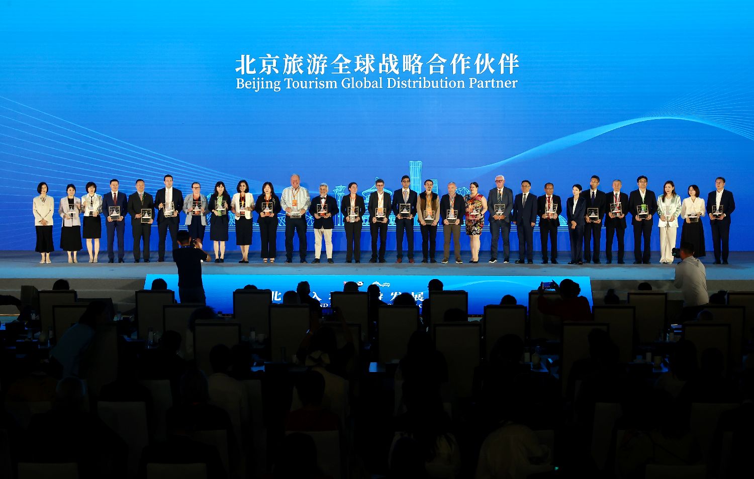 6月3日,2025北京入境旅游发展大会在北京开幕。会上介绍,今年1月至4月,北京共接待入境游客146.0万人次,同比增长57.1%;实现旅游花费19.0亿美元,同比增长55.0%。图为北京市文化和旅游局向“北京旅游全球战略合作伙伴”授牌。中新社记者易海菲摄