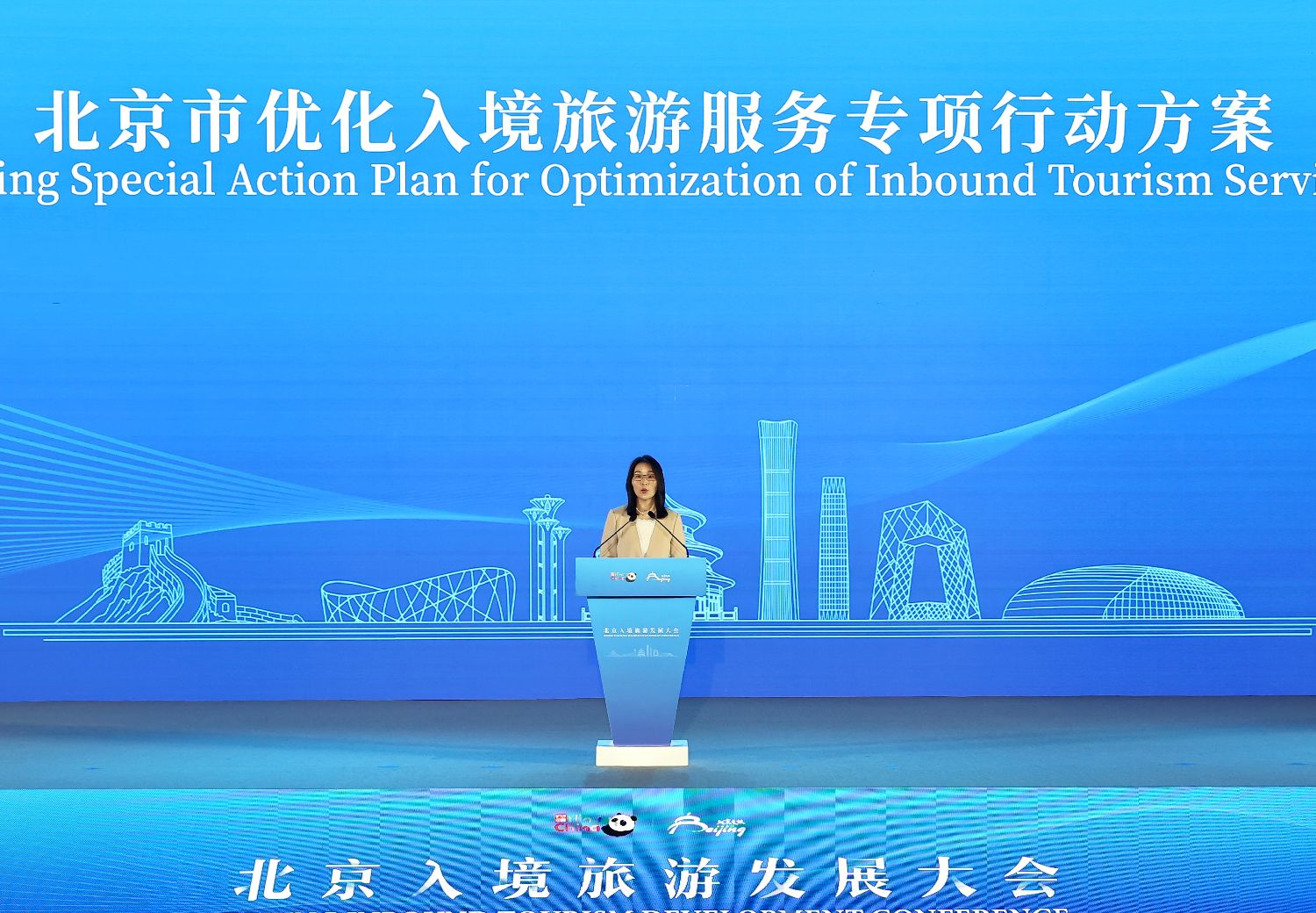 6月3日,2025北京入境旅游发展大会在北京开幕。会上介绍,今年1月至4月,北京共接待入境游客146.0万人次,同比增长57.1%;实现旅游花费19.0亿美元,同比增长55.0%。图为大会发布的《北京市优化入境旅游服务专项行动方案》,围绕产品、宣传、服务和保障4方面推出22条举措。中新社记者易海菲摄