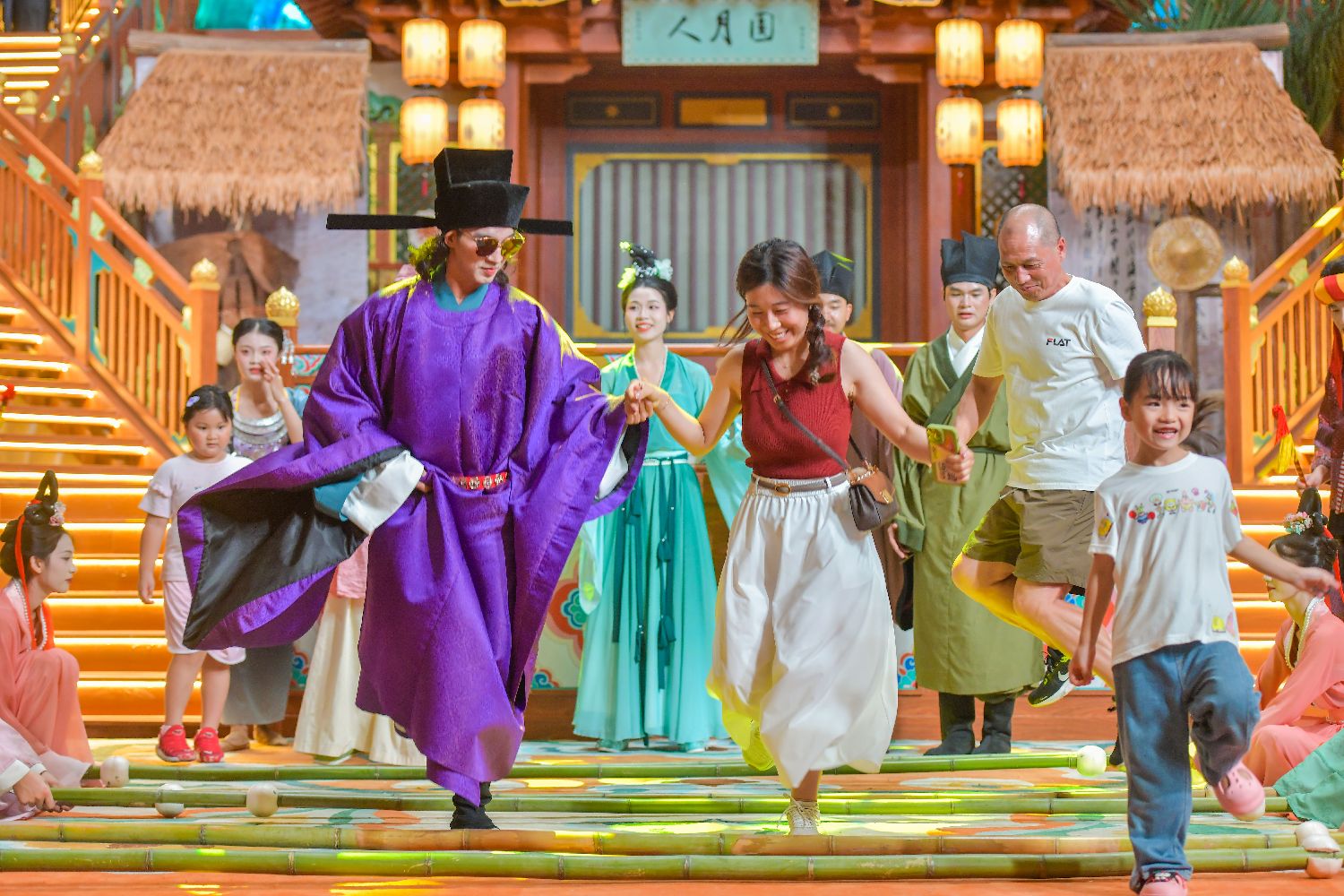 6月10日晚,在海南海口,一场名为《宋韵》的古风表演引人驻足观看。中国首个沉浸式东坡文化生活街区——海口东坡老码头灯火辉煌,游人如织。(图片来源:本文图片均自中新社)