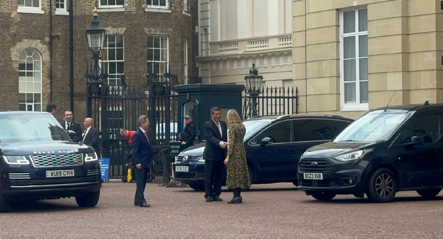当地时间6月9日至10日,中美经贸磋商机制首次会议在英国伦敦兰卡斯特宫举行。图为英方代表迎接中方代表团。(图片来源:本文图片均自中新社)