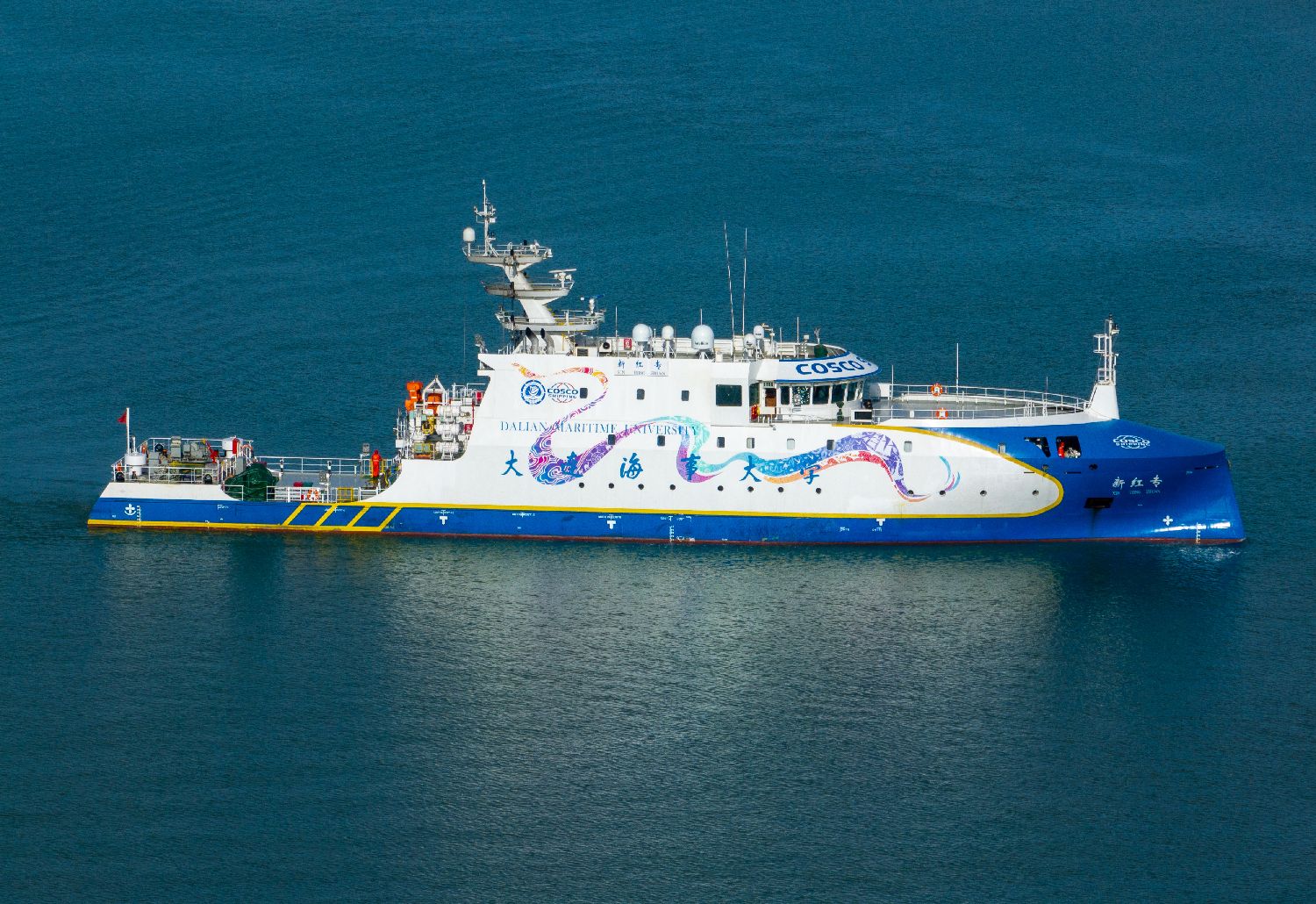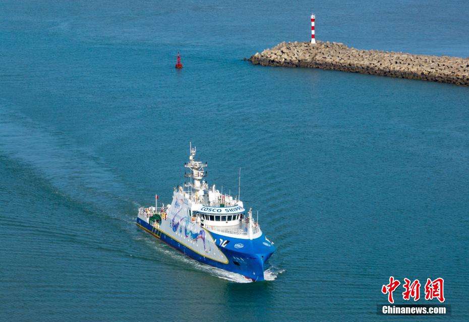 “新红专”轮是全球首艘集自主航行、远程控制和岸基信息支持于一体的科研与教学实训新型船舶,由中远海运集团、大连海事大学共同研发建造。(图片来源:中新社)