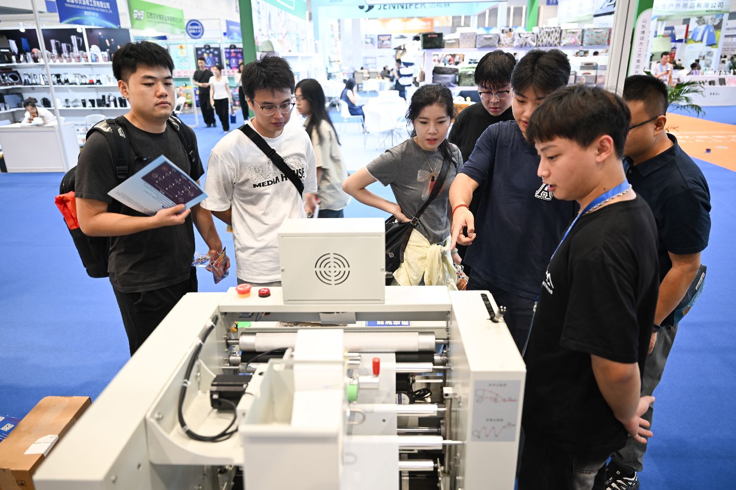 来自欧洲、北美、拉美、东南亚等市场的35家跨境电商平台和中国1000家产业带源头工厂参展,展示消费电子、家居宠物、户外五金等30多个热门品类的数万款商品。图为7月10日,2025全球跨境电商交易博览会在浙江杭州启幕。(图片来源:中新社)