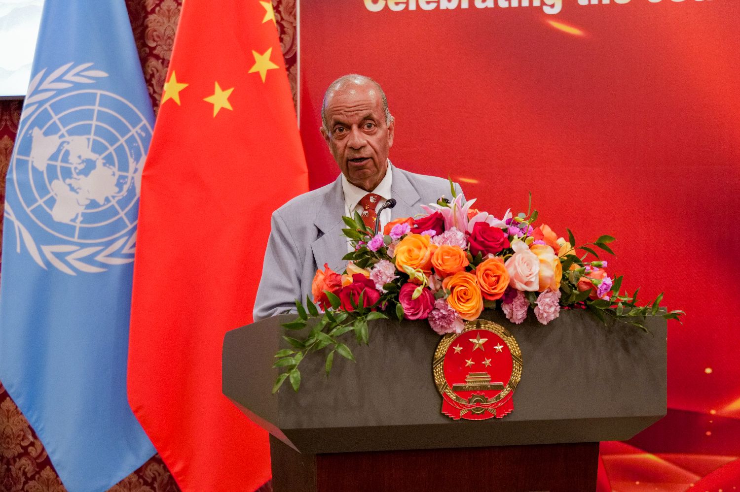 当地时间7月23日,中国常驻联合国代表团在纽约驻地举办庆祝中国人民解放军建军98周年招待会。