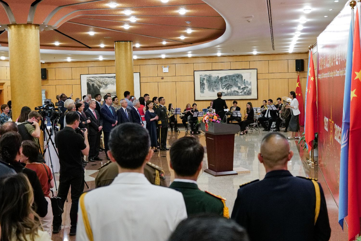 当地时间7月23日,中国常驻联合国代表团在纽约驻地举办庆祝中国人民解放军建军98周年招待会。