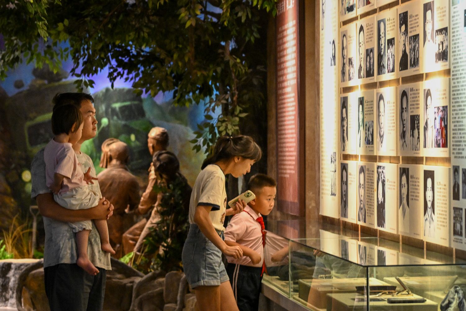 7月27日,观众步入南洋华侨机工回国抗日纪念馆。南洋华侨机工回国抗日纪念馆位于中国云南省德宏傣族景颇族自治州瑞丽市畹町镇,馆内珍藏的南侨机工文物史料实物和张历史照片再现抗战期间,3200余名南洋华侨青年响应侨领陈嘉庚号召,投身“抗战生命线”滇缅公路,以驾驶与维修技术突破日军封锁运送战略物资。(图片来源:本文图片均自中新社)