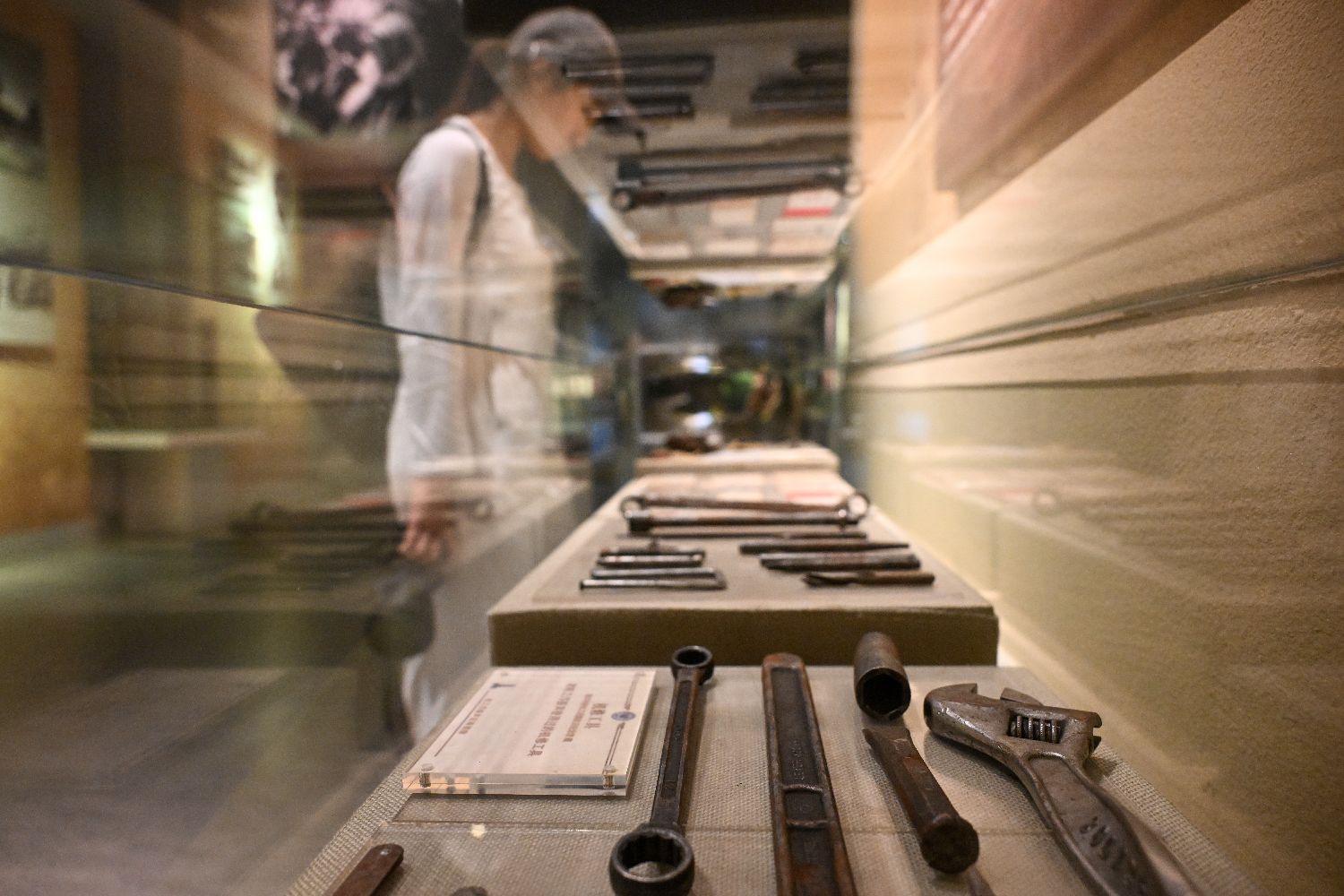 7月27日,馆内展出的老机工曾使用过的机修工具吸引观众。