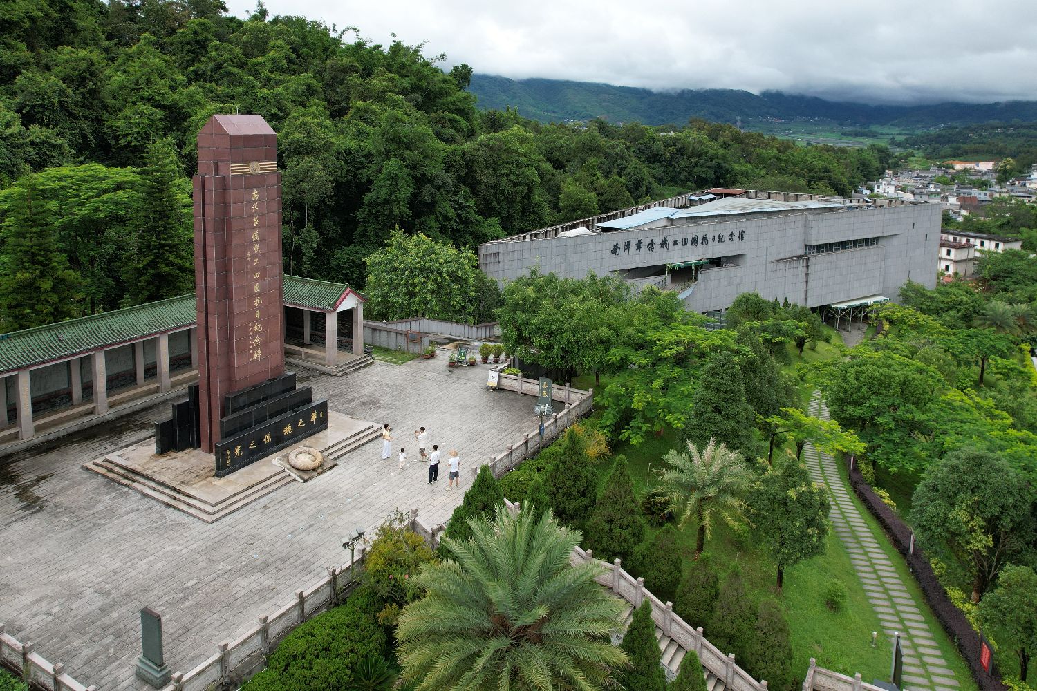 7月27日,航拍南洋华侨机工回国抗日纪念碑和南洋华侨机工回国抗日纪念馆。