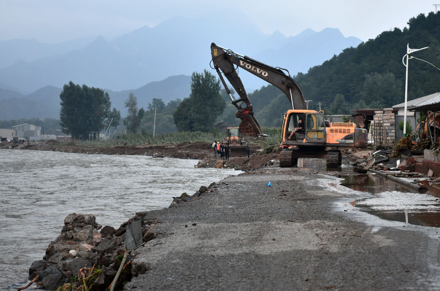 目前,道路、电力、通讯等抢修正在有序进行。图为7月28日,工作人员抢修道路。