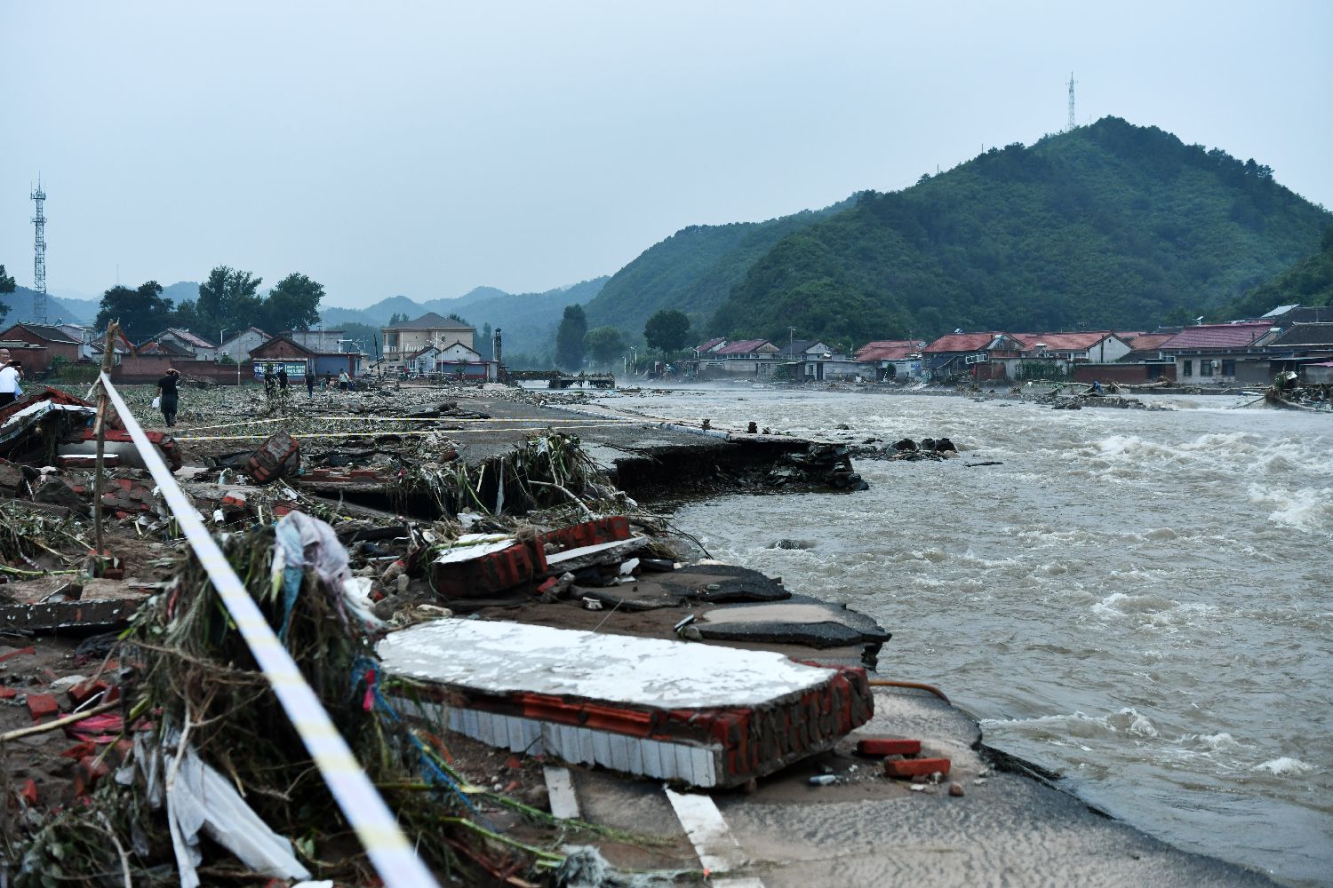 截至29日中午,河北滦平山体滑坡已致8人死亡、4人失联。河北省、承德市、滦平县迅速组织力量开展救援。目前,道路、电力、通讯等抢修正在有序进行。图为7月28日,道路被冲毁。
