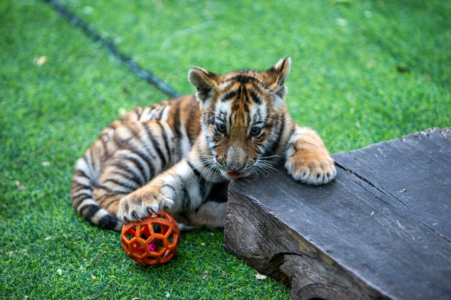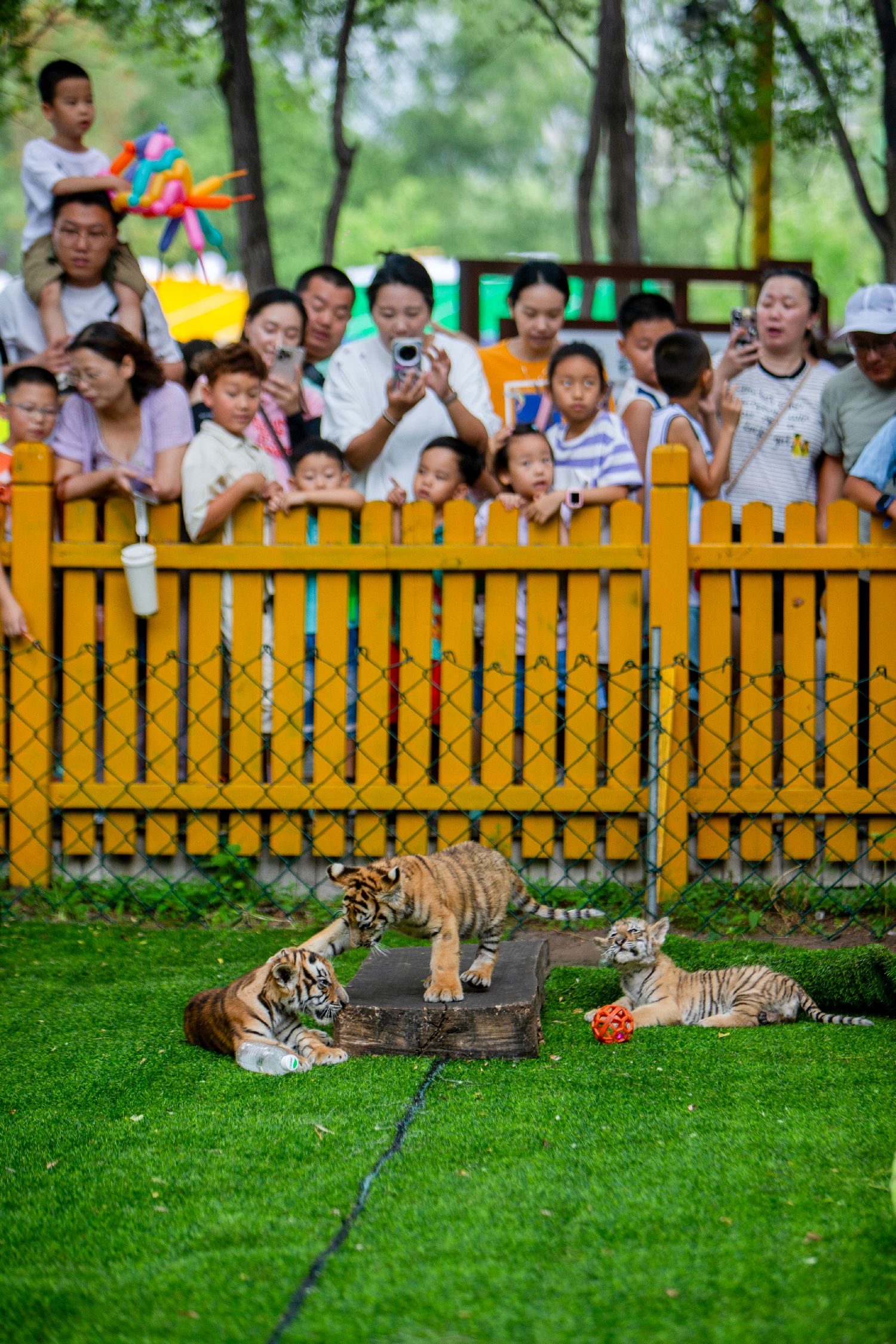 7月29日是第15个“全球老虎日”,位于哈尔滨的黑龙江东北虎林园启动“东北虎的世界世界的东北虎”主题系列活动,吸引众多家长带着孩子前去游玩,了解虎类保护知识。图为小东北虎在户外玩耍。(图片来源:本文图片均自中新社)