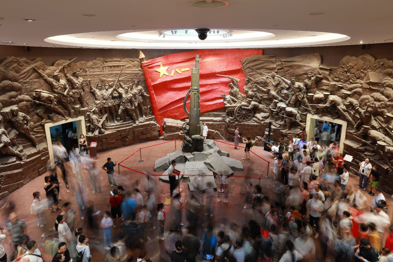 8月1日,在江西南昌八一起义纪念馆门前,游客络绎不绝。8月1日是八一建军节,不少游客走进南昌八一起义纪念馆参观。南昌八一起义纪念馆是为纪念南昌起义而设立的专题纪念馆。(图片来源:本文图片均自中新社)