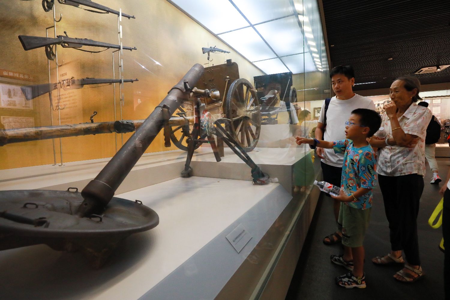 8月1日,游客在江西南昌八一起义纪念馆参观展览。