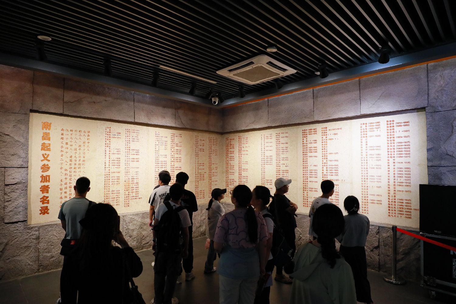 8月1日,江西南昌八一起义纪念馆南昌起义参加者名录墙前,不少游客驻足观看。