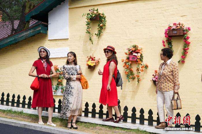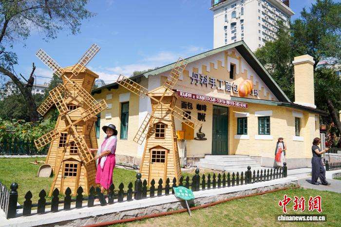8月20日,在黑龙江哈尔滨,游人在花园街历史文化街区内拍照。近日,哈尔滨市花园街历史文化街区开园。(图片来源:中新社)