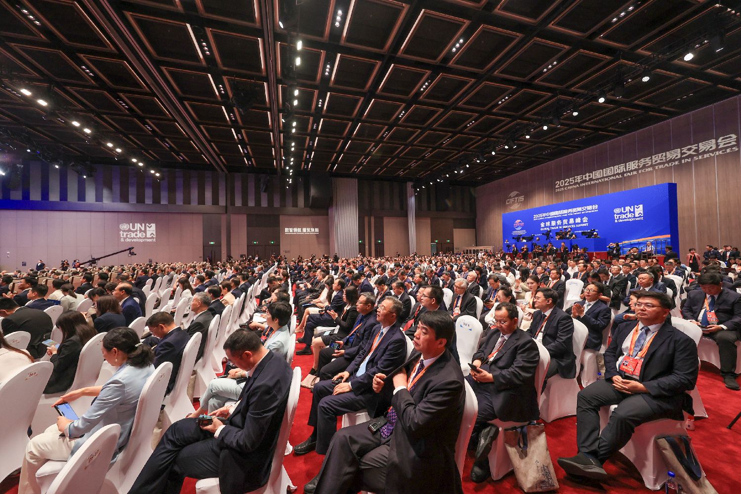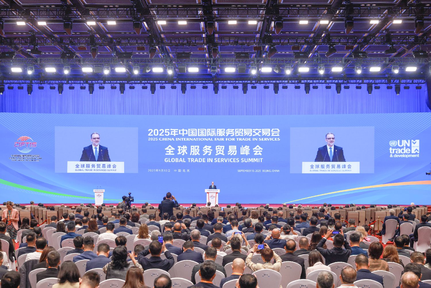 图为9月10日,2025年中国国际服务贸易交易会全球服务贸易峰会现场。