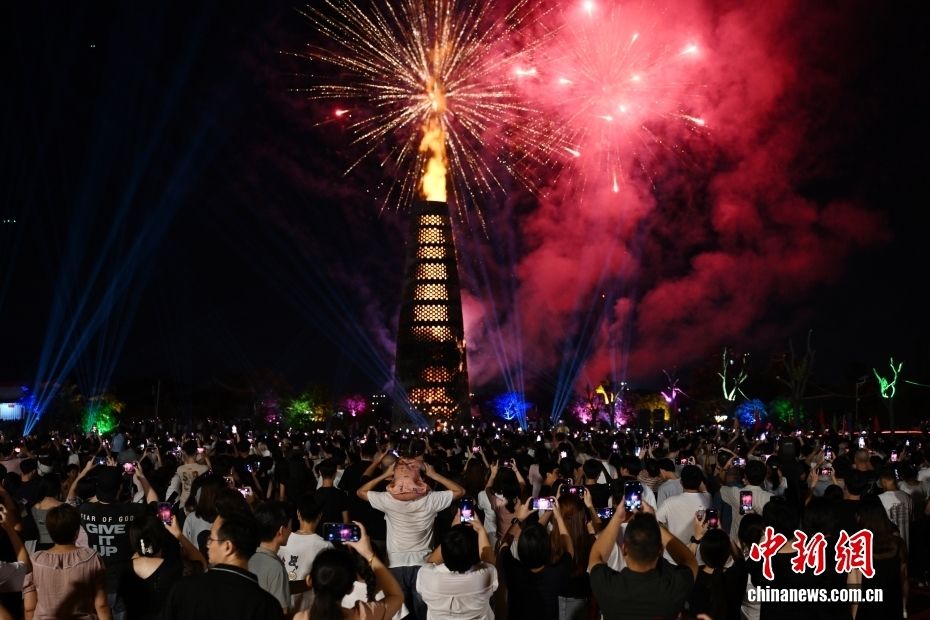 10月6日,江西赣州赣县区客家文化城举行客家民俗“烧瓦塔”。每当重大节日或有远道而来的贵客光临,客家人都要举行“烧瓦塔”,它代表了民众祈求风调雨顺、日子红火、蒸蒸日上、健康平安的美好祝愿。赣州有“客家摇篮”之称。