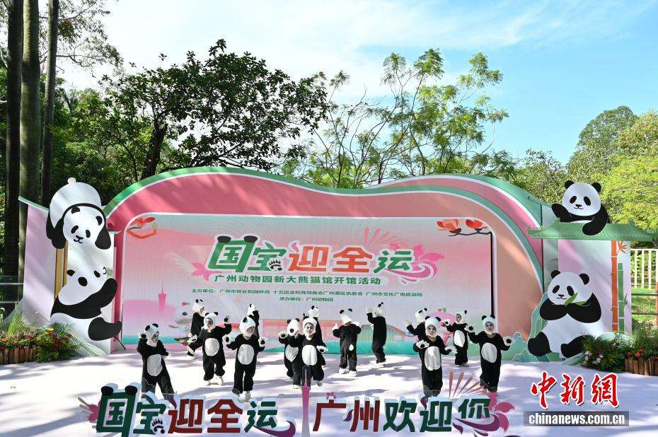 10月20日,在第十五届全国运动会开幕倒计时20天之际,“国宝迎全运”广州动物园新大熊猫馆开馆活动在广东省广州市举行。经过一段时间的观察适应期,两只大熊猫新成员“久久”“友友”正式亮相。图为大熊猫“久久”(右)“友友”在新大熊猫馆玩耍。(图片来源:中新社)