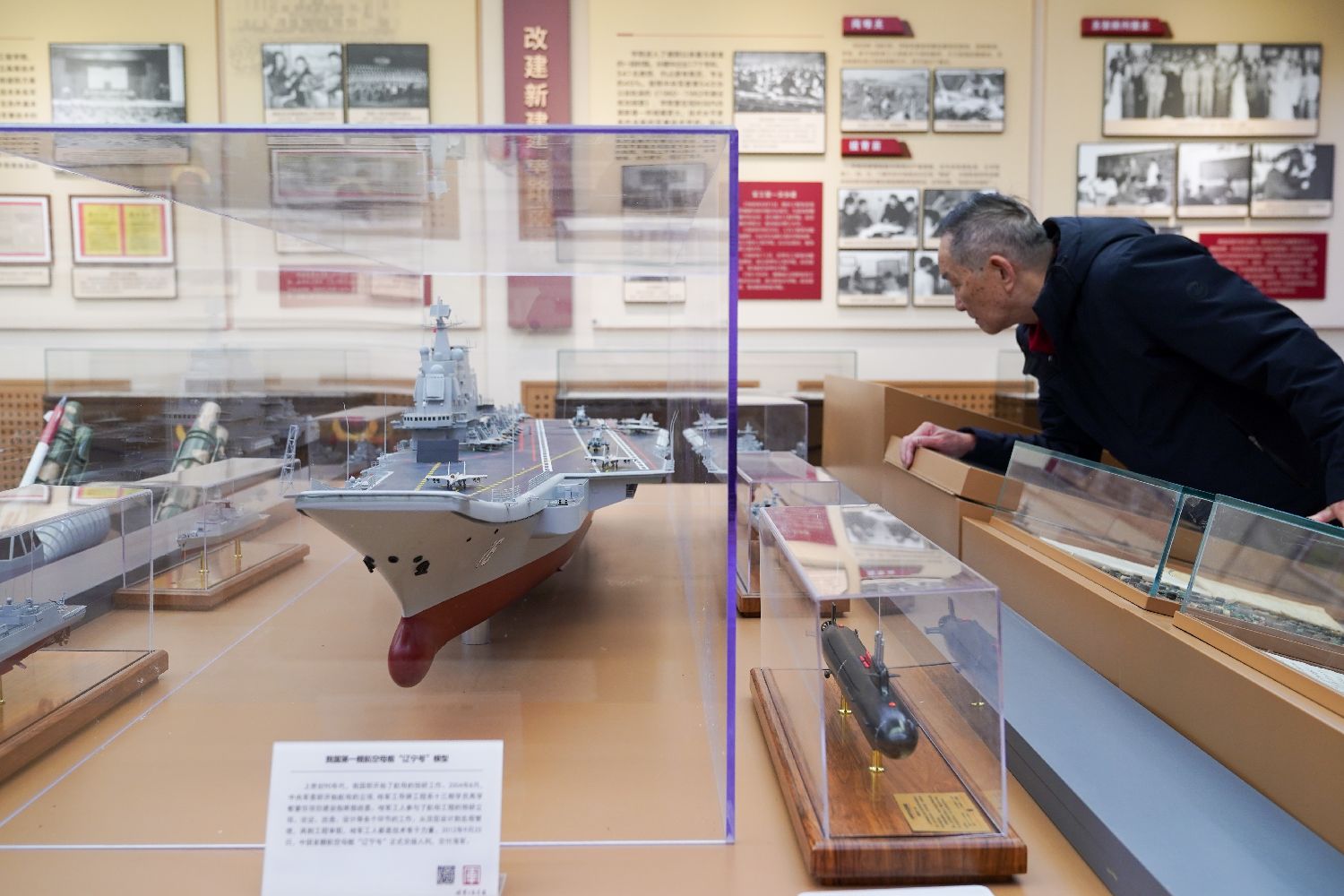 作为新中国成立初期,举全国之力兴建的第一所高等军事工程技术院校,它曾是亚洲规模最大的军事工程学府。图为10月23日,中国第一艘航空母舰“辽宁号”模型吸引市民观看。(图片来源:中新社)