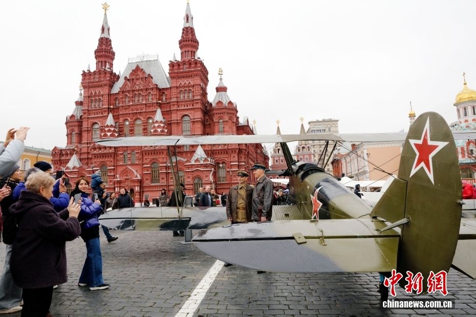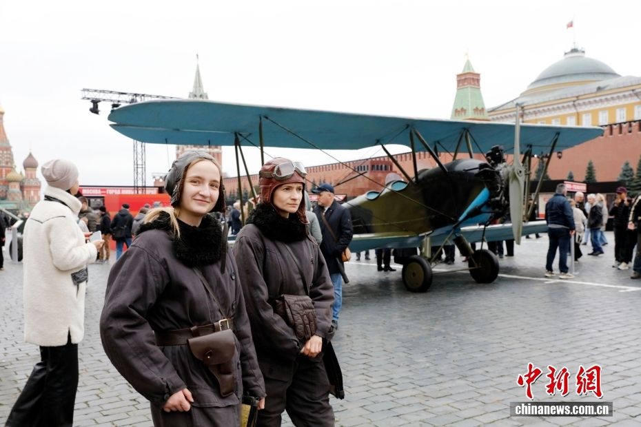 当地时间11月7日,俄罗斯首都莫斯科,民众参观以纪念1941年苏联红场阅兵式为主题的露天展览。