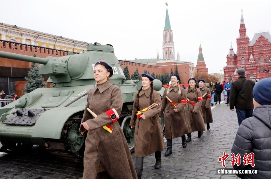 当地时间11月7日,在俄罗斯首都莫斯科,民众参观以纪念1941年苏联红场阅兵式为主题的露天展览。1941年11月7日,在德国法西斯军队兵临莫斯科城下之际,苏联军队在红场举行阅兵式。受阅部队在阅兵完毕后直接开赴前线同侵略者作战。2004年俄罗斯总统普京签署法令,将11月7日定为“军人荣誉日”。(图片来源:本文图片均自中新网)