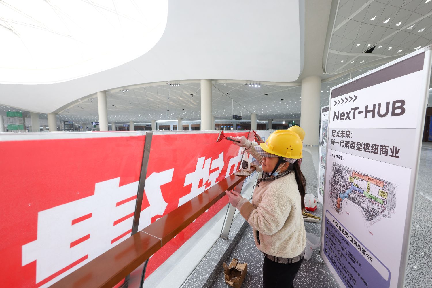 11月13日,北京城市副中心站正在进行装饰装修施工。