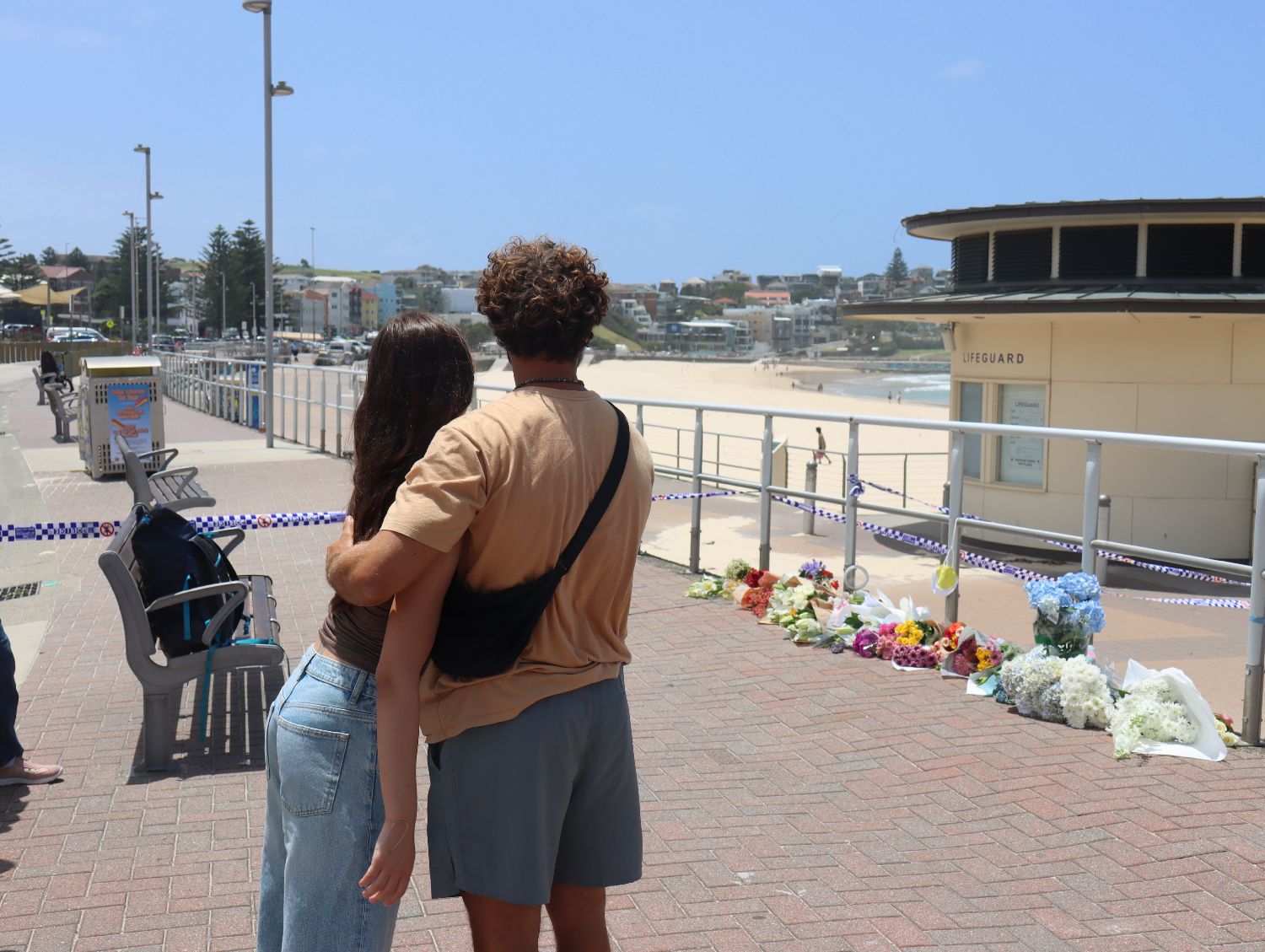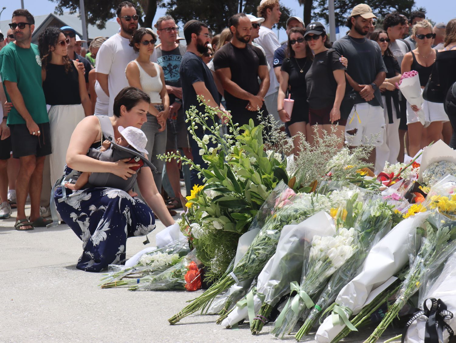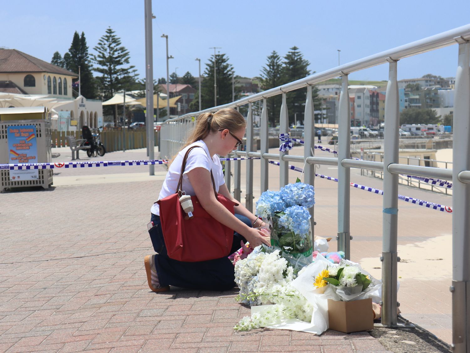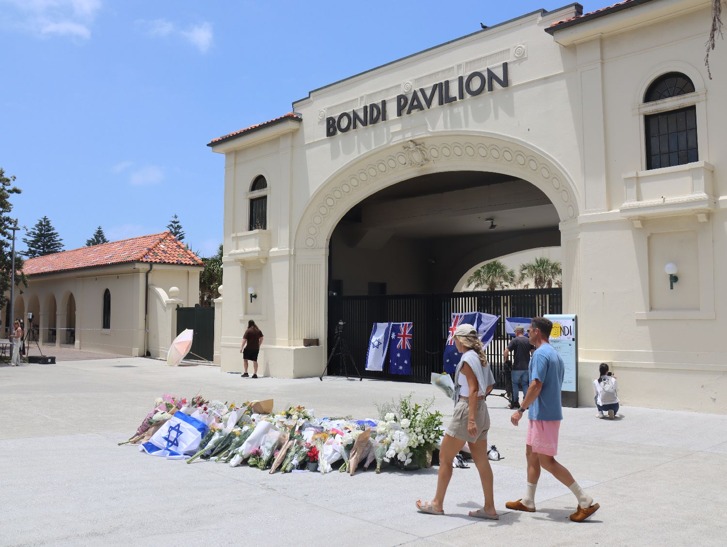 当地时间12月15日,澳大利亚悉尼市民前往位于邦迪海滩北部的枪击事件事发现场献花致哀。