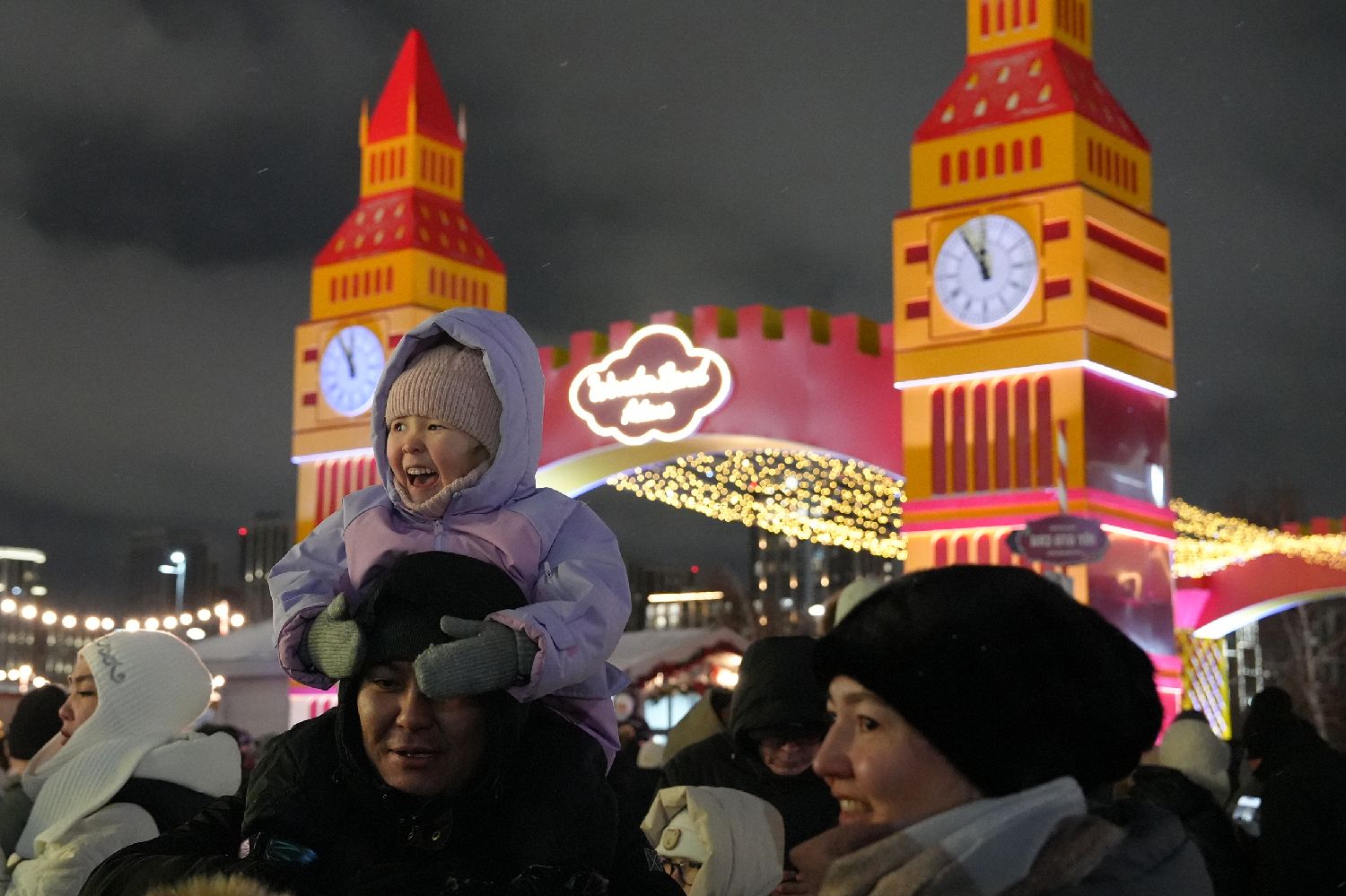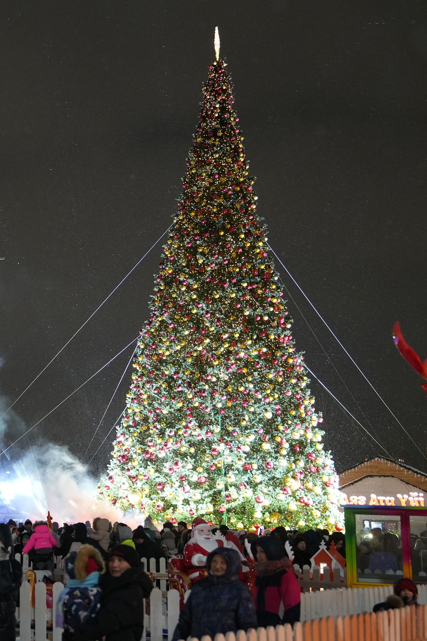 当地时间12月19日晚,哈萨克斯坦首都阿斯塔纳举行新年枞树点亮仪式,迎接即将到来的新年。(图片来源:本文图片均自中新社)