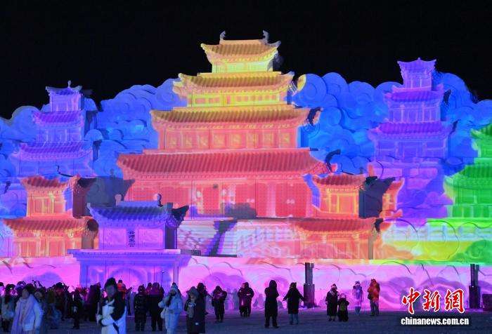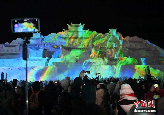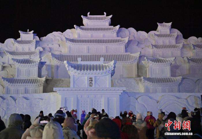 雪雕版“云顶天宫”正式点亮。