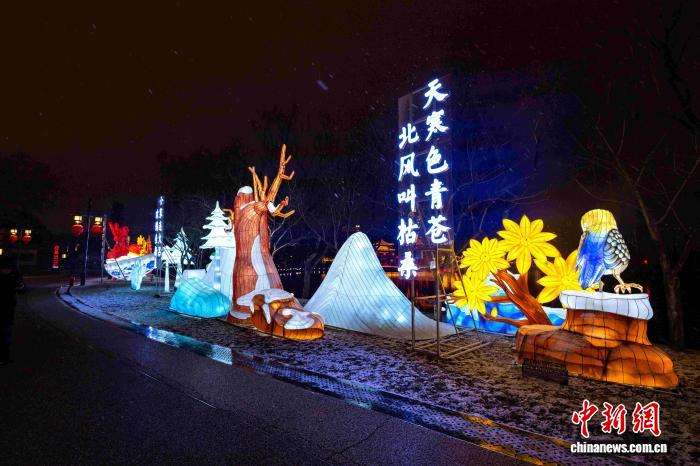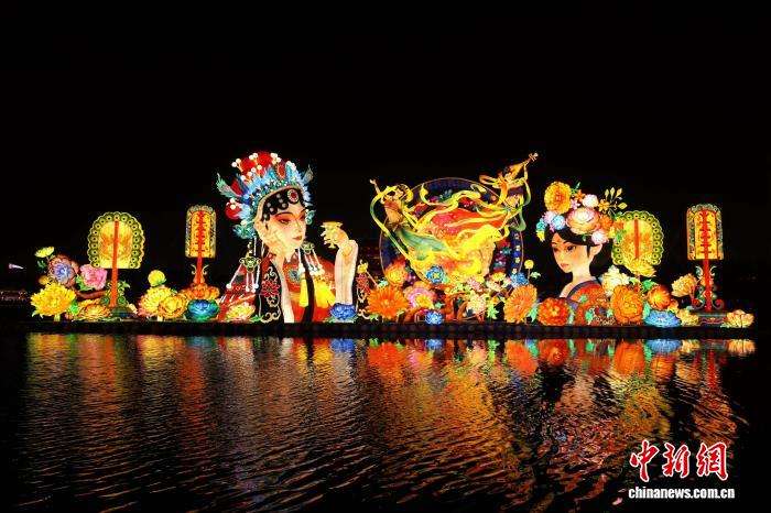 大唐芙蓉园内的唐诗花灯。(图片来源:中新网发/曲江文旅股份供图)