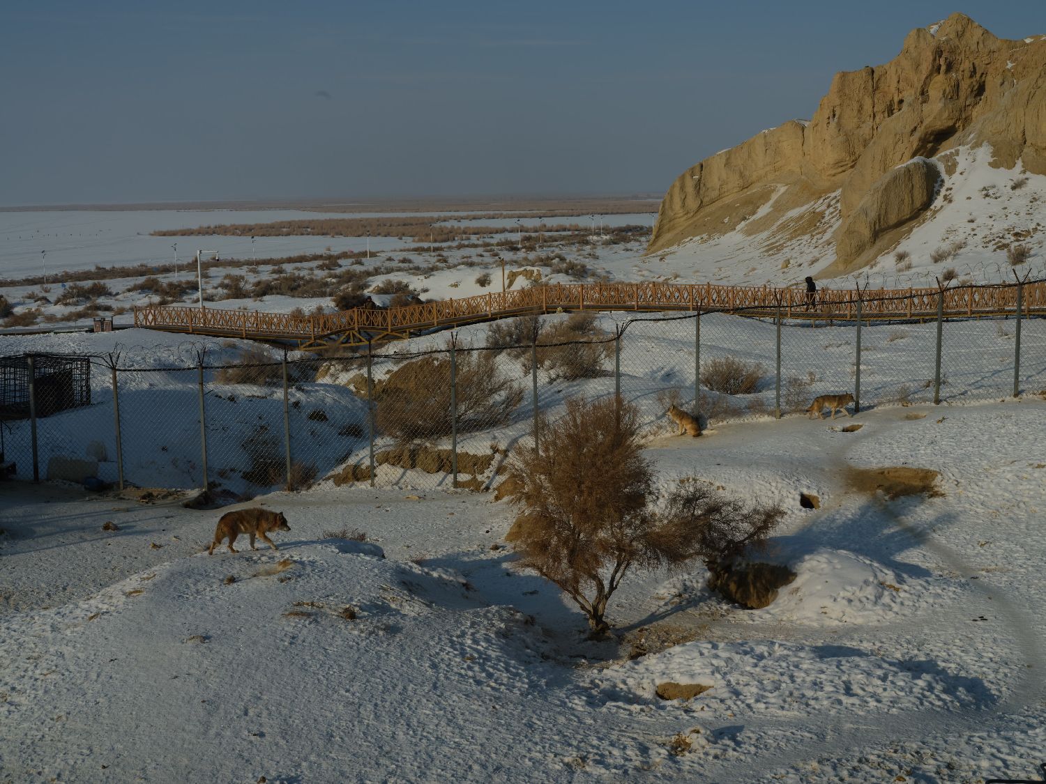 图为1月5日,在阿勒泰海上魔鬼城的雪上苍狼。