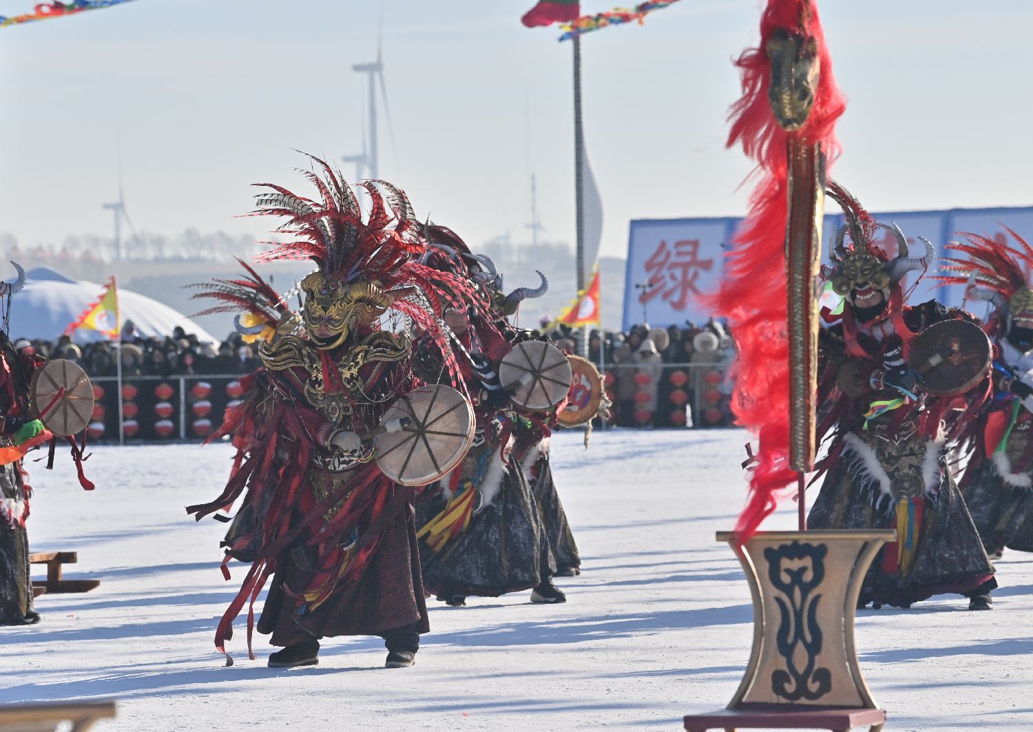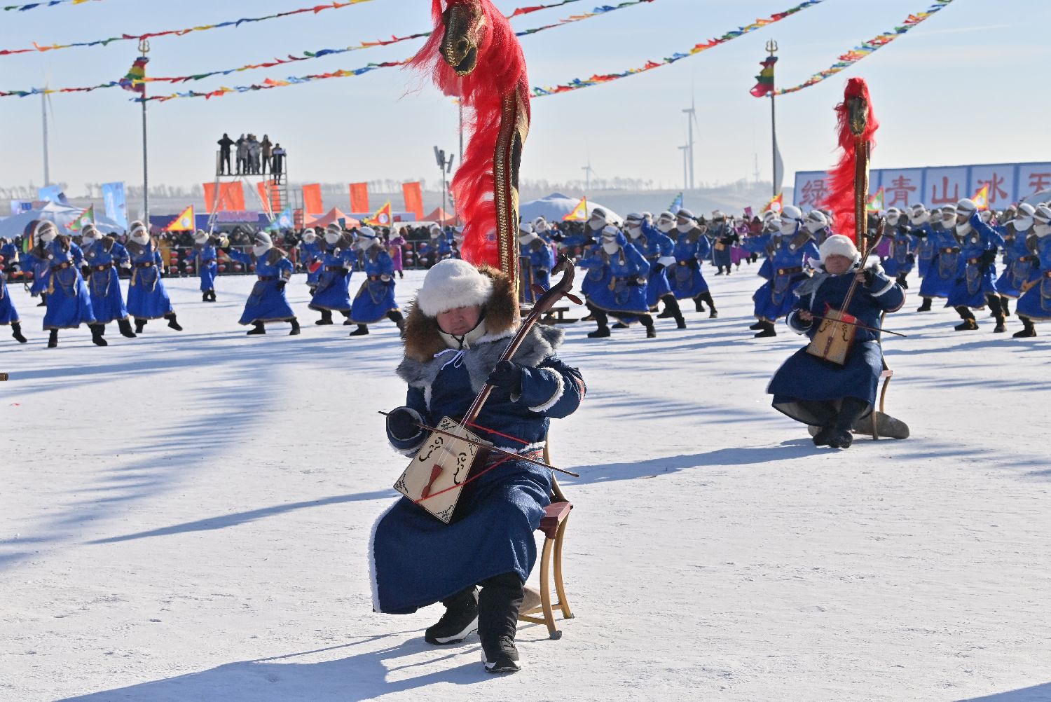 1月8日,吉林松原查干湖第24届冰雪渔猎文化旅游节开幕,数万名中外游客齐聚冰湖,见证冬捕奇观。图为开幕式上的马头琴表演。(图片来源:本文图片均来自中新社)