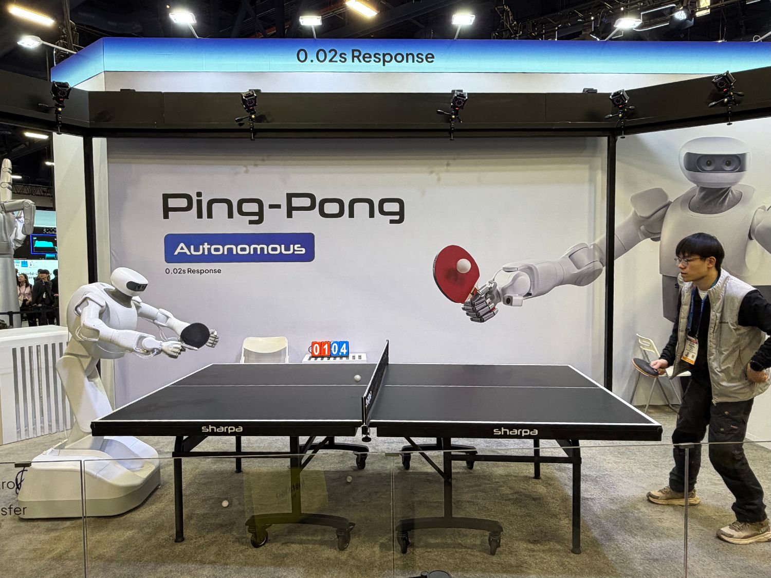 图为机器人表演打乒乓球。